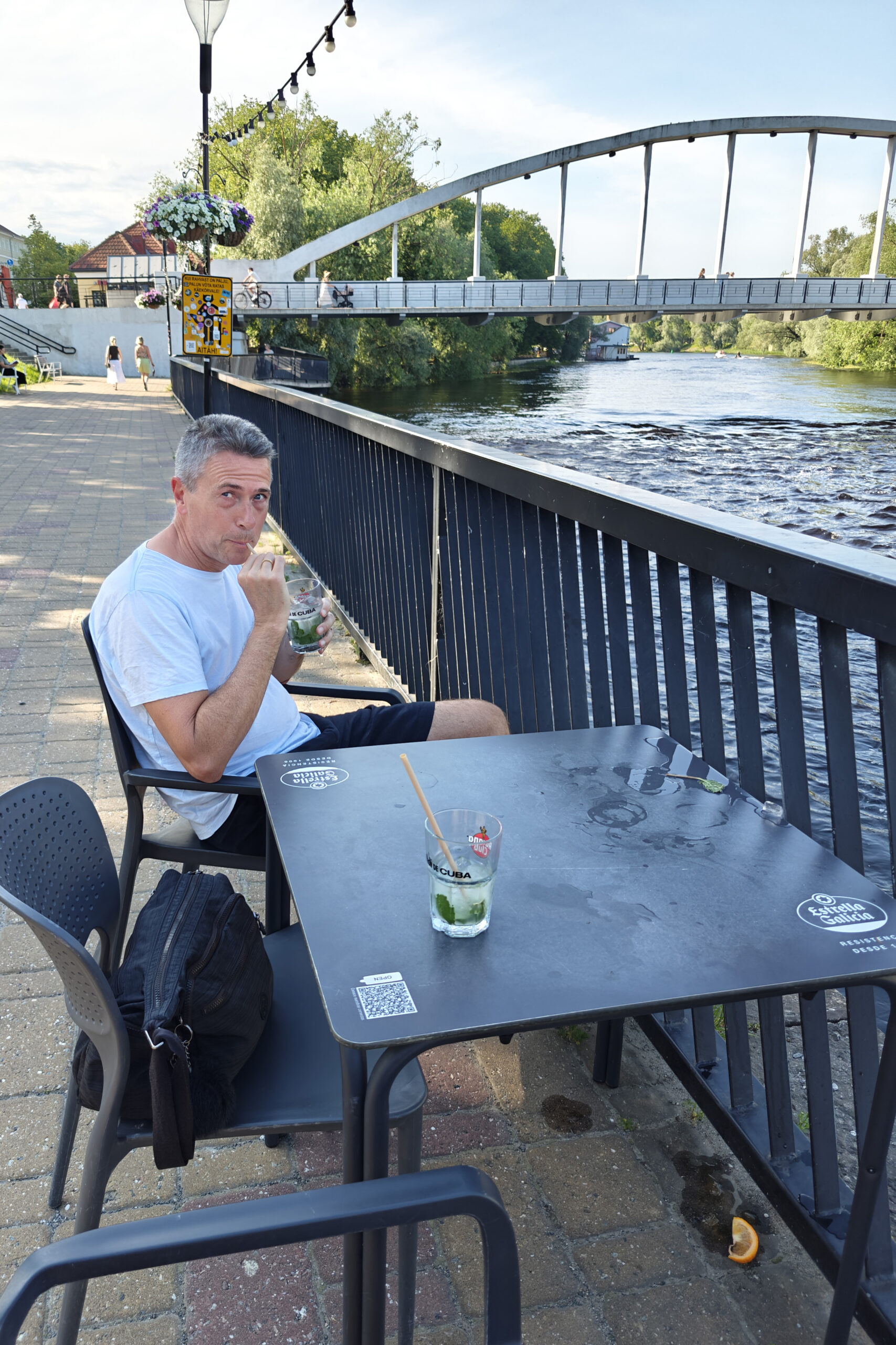 Tartu is vooral bekend als universiteitsstad: de Universiteit van Tartu, opgericht in 1632, is de oudste en belangrijkste universiteit van Estland en trekt veel studenten uit het hele land en daarbuiten. Die hebben nu vakantie, dus de stad is wat rustiger dan normaal. Maar het was bijzonder warm toen we hier toekwamen rond 17u (31 graden) en dus zat er heel wat volk op de terrasjes van de bars langs de oevers van de Emajõgi-rivier. We vonden dat we, na die lange busrit, ook een drankje hadden verdiend en dus genoten we van een mojito langs het water.