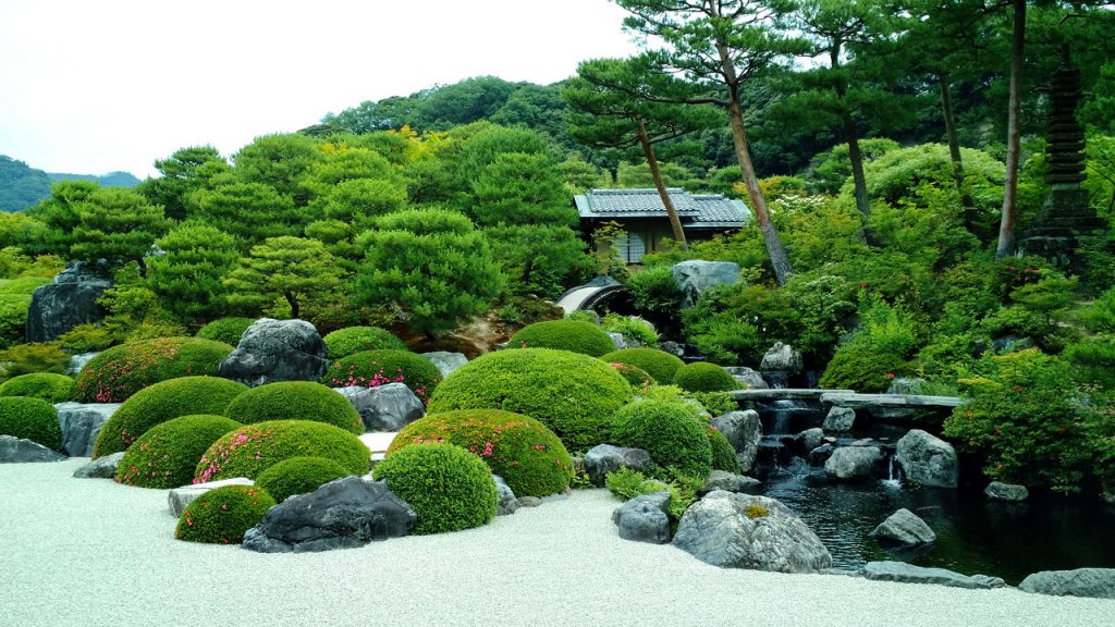 Vanmorgen namen we een lokale trein naar Yasugi, waar we overstapten op de shuttle bus naar het Adachi museum. De buschauffeur vroeg of we Japans spraken. Toen ik zei: “少し” (s(u)koshi – een beetje”, gaf hij ons een blad waarop in het Engels geschreven stond dat de shuttle bus maximaal 28 personen mocht vervoeren en dat we daarom best bij de ticketbalie van het museum een ticket voor de terugrit reserveerden. Hij deed zelf die uitleg dan in het Japans (wij waren de enige buitenlanders op de bus).