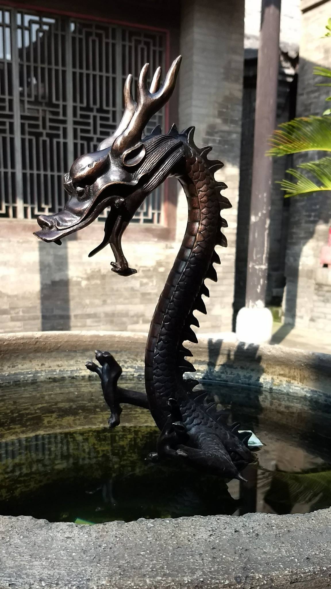 We wisten waar bus 108 ons had afgezet, en we wisten ook dat die doorreed naar Pingyao, dus we waren blij te zien dat er net een bus aankwam toen we het tempelcomplex buitenkwamen. Wij dus op de bus… om even later vast te stellen dat we terug aan het treinstation uitkwamen. Het is ons na 2 dagen hier nog altijd niet duidelijk hoe die 108-bus nu precies werkt. We zijn nog een tijdje blijven zitten, in de hoop dat de bus alsnog verder zou rijden naar Pingyao, maar toen de buschauffeur zijn klapstoeltje bovenhaalde en buiten ging zitten, beseften we dat dat wel eens lang zou kunnen duren… en hebben we dus nog maar eens een taxi moeten nemen.