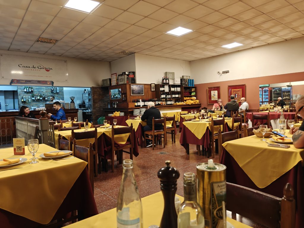 We hebben in Casa de Galicia Restaurante lekker gegeten (‘arroz con marisco’) en ook een lekkere Argentijnse wijn gedronken, voor bijna geen geld (6.000 pesos, een kleine 6 euro voor een halve fles).