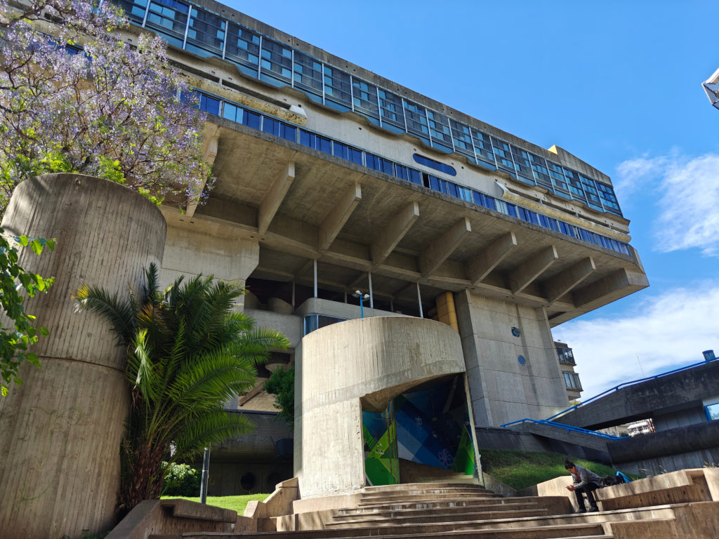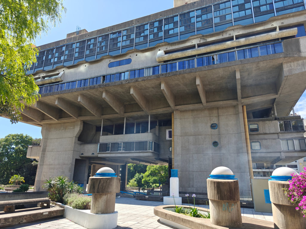 We wandelden eerst naar de Biblioteca Nacional. Hoewel het stoffelijk overschot van Evita Perón op het Cementerio vlakbij ligt – zie lager – zou haar geest in de Biblioteca ronddolen. Het gebouw waarin de nationale bibliotheek is gehuisvest, werd in brutalistische stijl ontworpen door de architect Clorindo Testa in opdracht van het militaire regime dat Perón in 1955 had verdreven en is gebouwd op de plek waar de Peróns hebben gewoond.