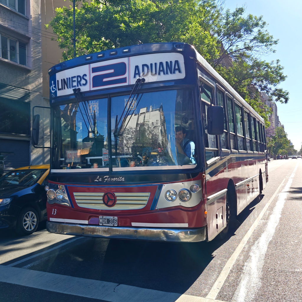 Na het ontbijt deze ochtend trokken we naar de Recoleta-wijk. Daarvoor konden we 2 metro’s nemen, of 1 bus. Die busrit was iets sneller en het leek me ook wel prettiger, om zo ook iets van buiten te kunnen zien. Maar ik had geen rekening gehouden met de ochtendspits – zowel qua volk op de bus als het verkeer. Het duurde dus minstens even lang als de metroritten zouden geduurd hebben en we stonden dicht op elkaar. Volgende keer zal het dus metro worden als we kunnen kiezen.