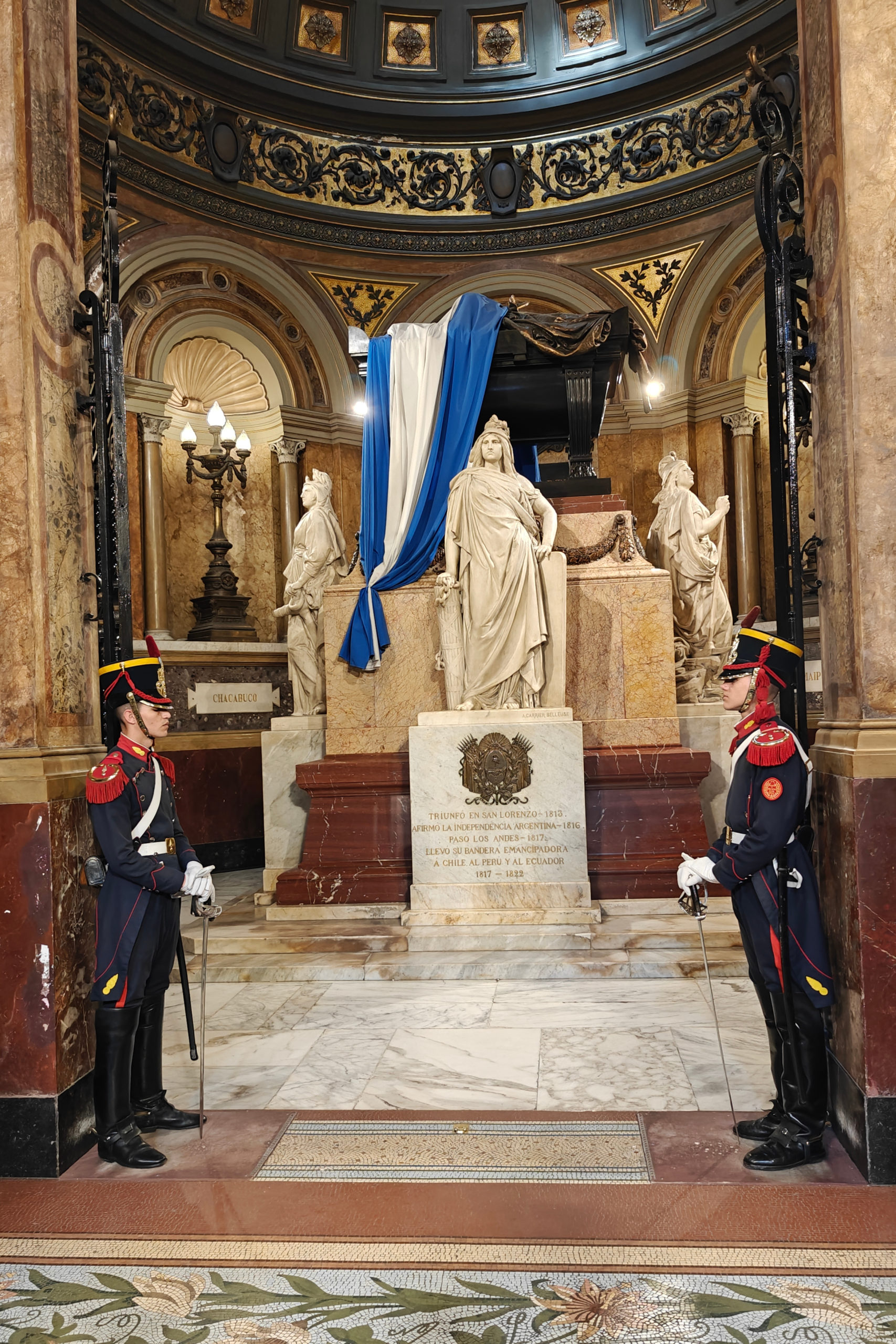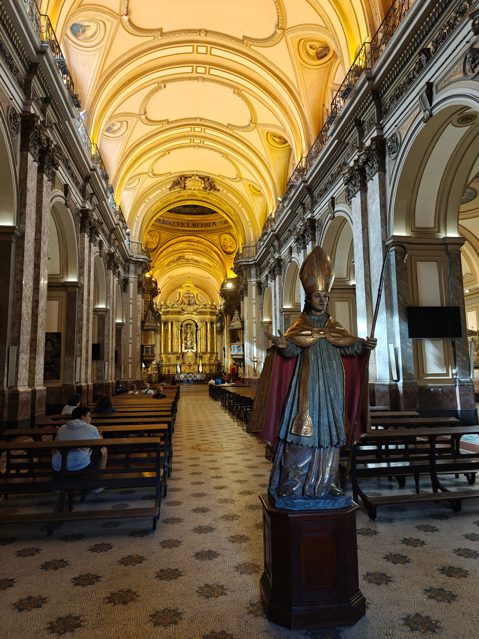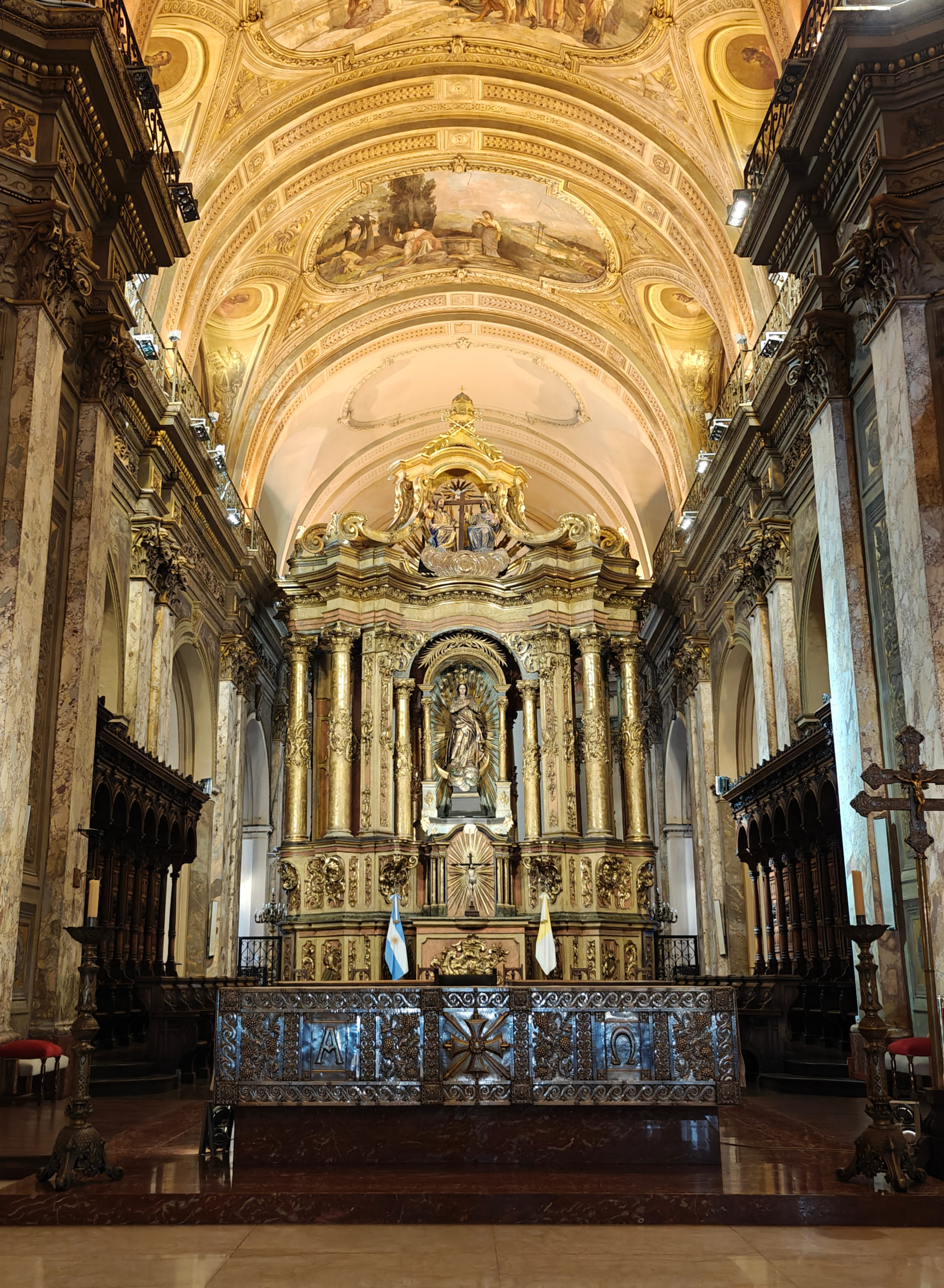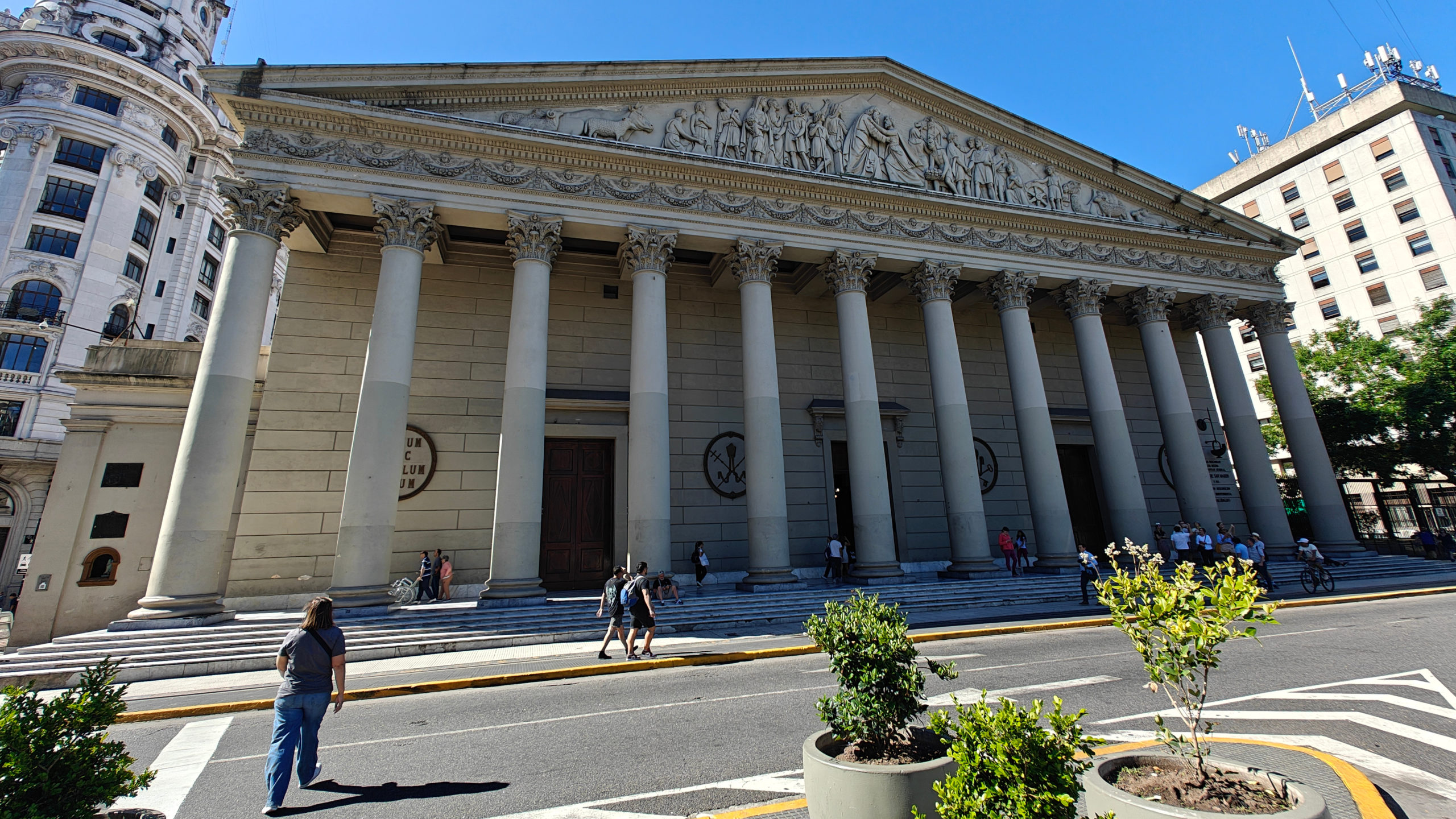 Aan de andere kant van het plein staat de in 1791 ingewijde Catedral Metropolitana. Die ziet er vanbuiten meer uit als een antieke tempel dan als een katholieke kerk. Pas als je binnen staat, merk je het kruisvormige grondplan en de koepel op. In het rechterschip bevindt zich een mausoleum met de overblijfselen van de Argentijnse bevrijder generaal José San Martín, met twee lijfwachten die het moeten bewaken.
