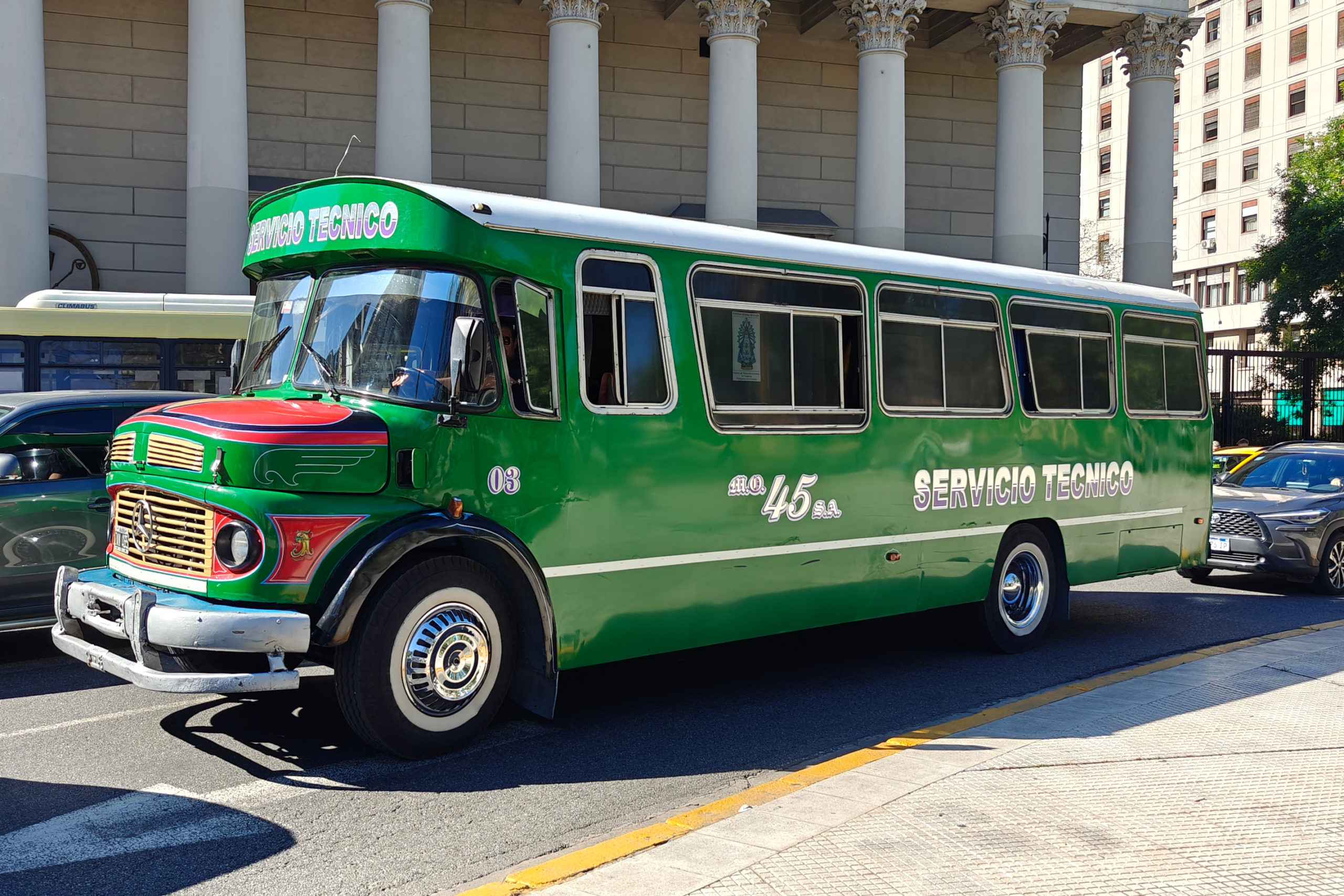 Intussen nam ik ook een paar foto’s van de bussen. Het is absoluut niet moeilijk de juiste bus te nemen, want het nummer staat in megagrote cijfers op de bus. En je ziet ook speciale bussen met sierlijke letters op de zijkant.