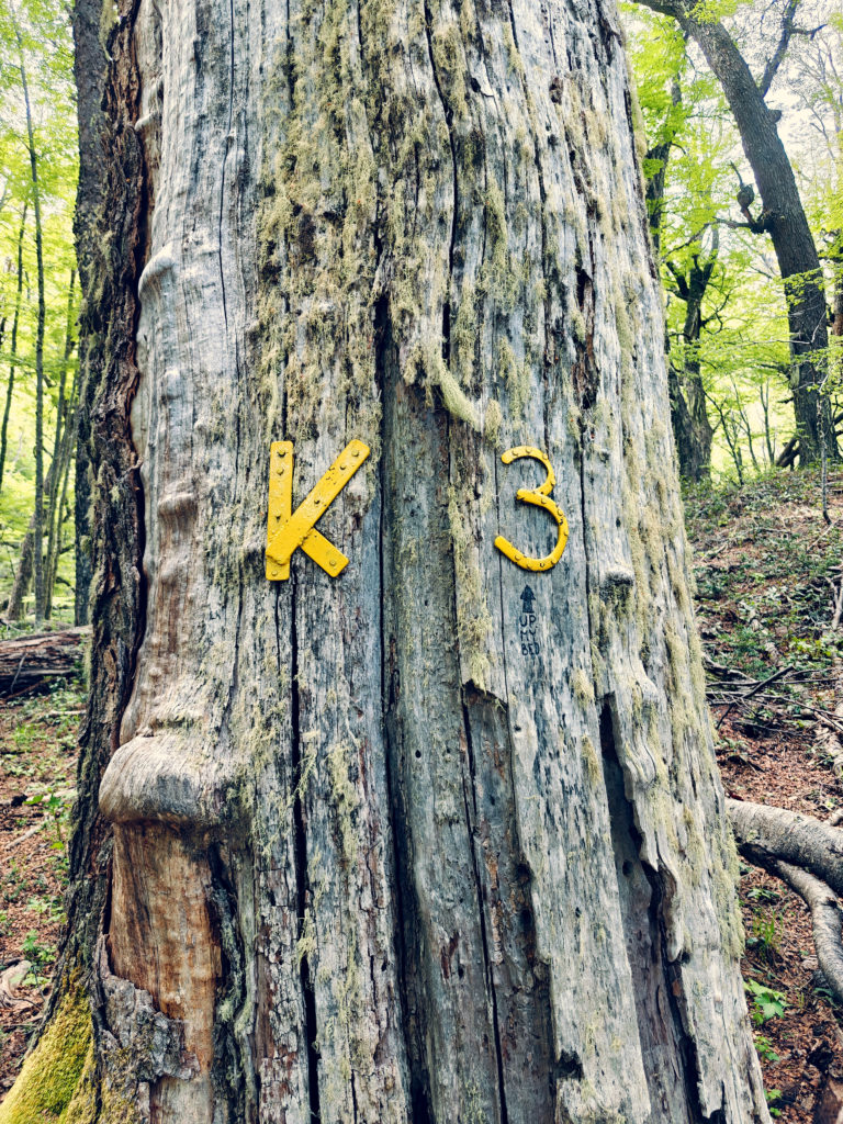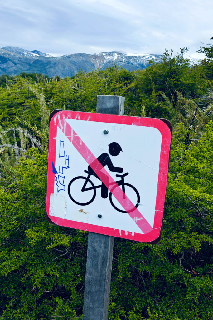 Bij een laatste splitsing stonden we plots voor een dilemma: de laatste 3 km bleek geen wandelpad te zijn, maar een mountainbike-pad. Er stond dan ook een verbodsbord voor voetgangers. Maar het alternatief was helemaal op onze stappen terugkeren: dat zou dan 10 km terug zijn, waarvan de eerste 4 km een bijzonder steile klim. Dat zagen we eigenlijk niet zitten (en ons lichaam ook niet). We hebben dus het verbodsbord genegeerd en het mountainbike-pad genomen.