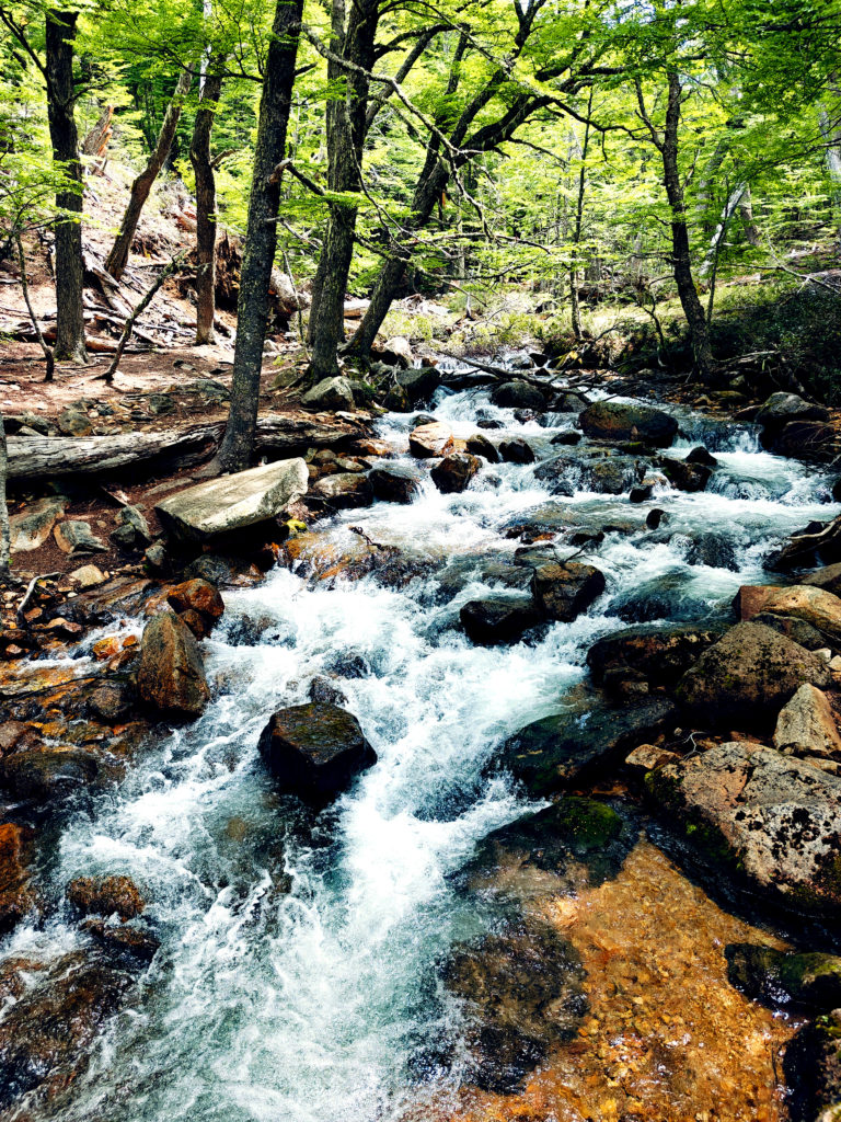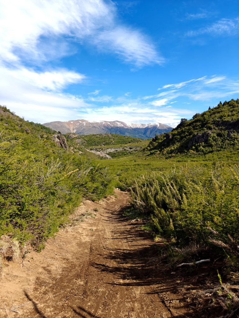 Het Franse koppel had een kortere, minder uitdagende route uitgestippeld van 14 km. Die vond ik ook vrij snel terug in Wikiloc, en we besloten van samen te vertrekken. We liepen eerst naar een informatiepunt om te vragen of de trail wel open was (soms zijn trails gesloten o.w.v. slechte weeromstandigheden of andere problemen) en er bleek geen probleem te zijn. We vertrokken dan samen op weg naar het beginpunt. Dat lag aan het einde van de straat waar de supermarkt ook lag en toen we daar passeerden, kwam plots de vrouw van achter de kassa uit de winkel gelopen en riep ons achterna: “funciona ahora, funciona ahora” (het werkt nu!). Bijzonder vriendelijk dat ze die moeite deed. Wij dus opnieuw naar binnen en nu konden we inderdaad onze kaart opladen tot het maximum. We zouden dus vanavond met de bus terug naar Bariloche kunnen.