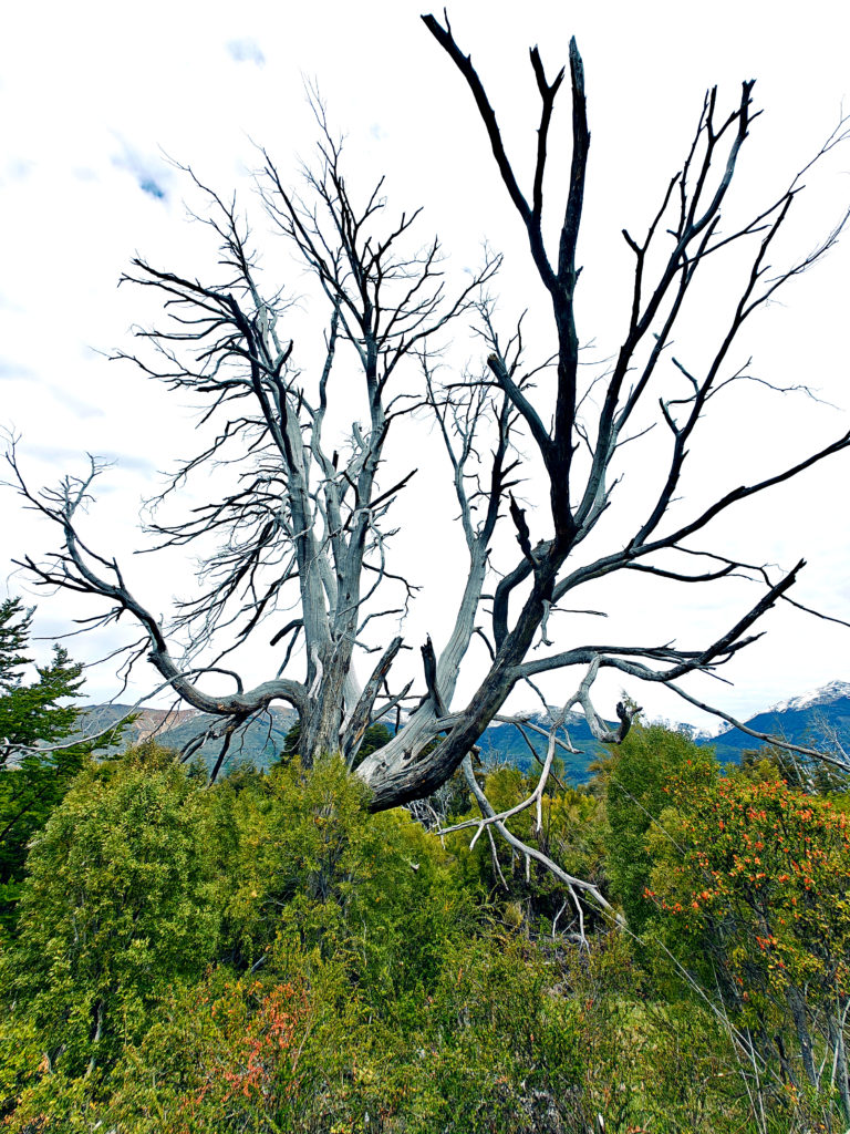 Na 7 km moesten we via een ander pad terug naar Villa Catedral, maar we wilden toch nog een stukje van de oorspronkelijke trail doen, in de hoop om een nog beter zicht op de bergen te krijgen, ook al omdat we dicht tegen de sneeuwgrens leken te komen. Op de kaart zagen we een berghut gemarkeerd en we zijn tot dat punt geklommen, maar een mooi uitzicht kregen we niet te zien. Het bos waarin we liepen was wel heel mooi. Bij die eerste berghut hebben we dan maar besloten op onze stappen terug te keren tot bij de splitsing, want het was al behoorlijk pittig geweest en we wisten dat vanaf de splitsing het ook nog 7 km zou zijn tot aan het beginpunt.