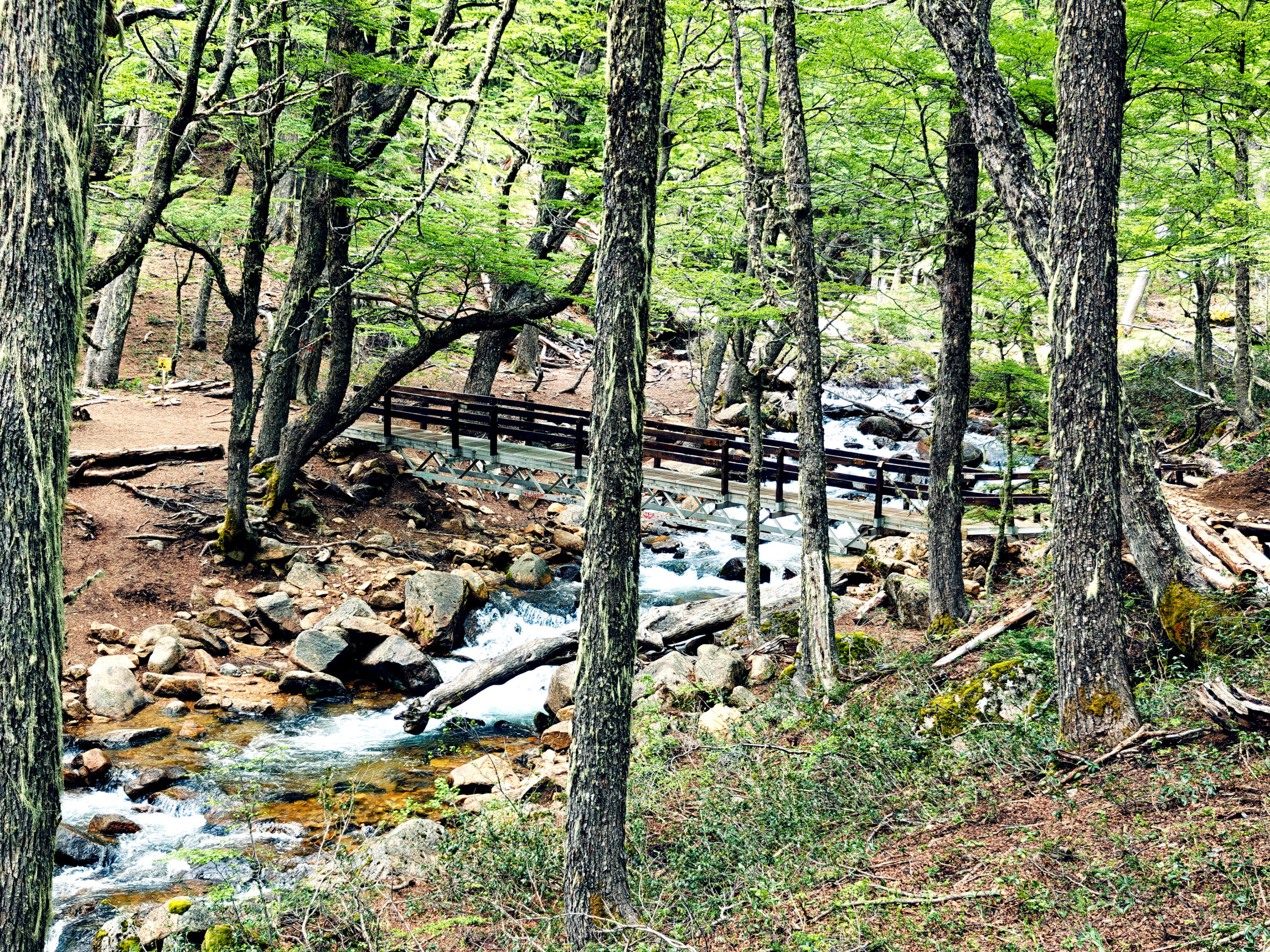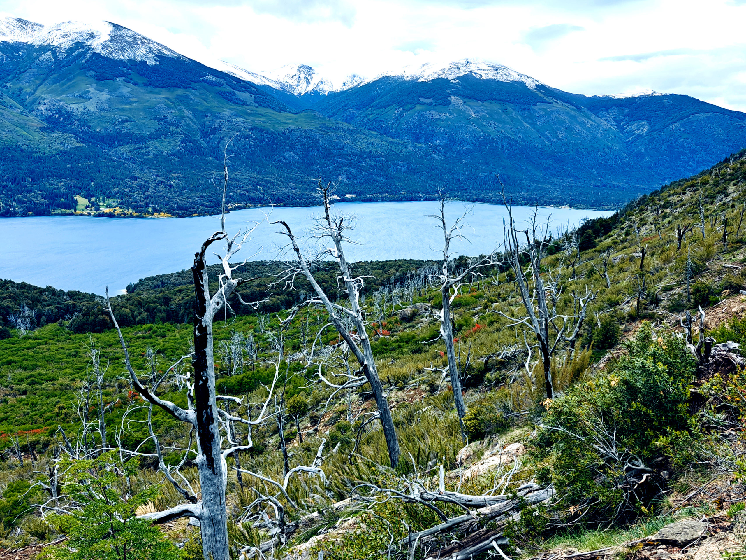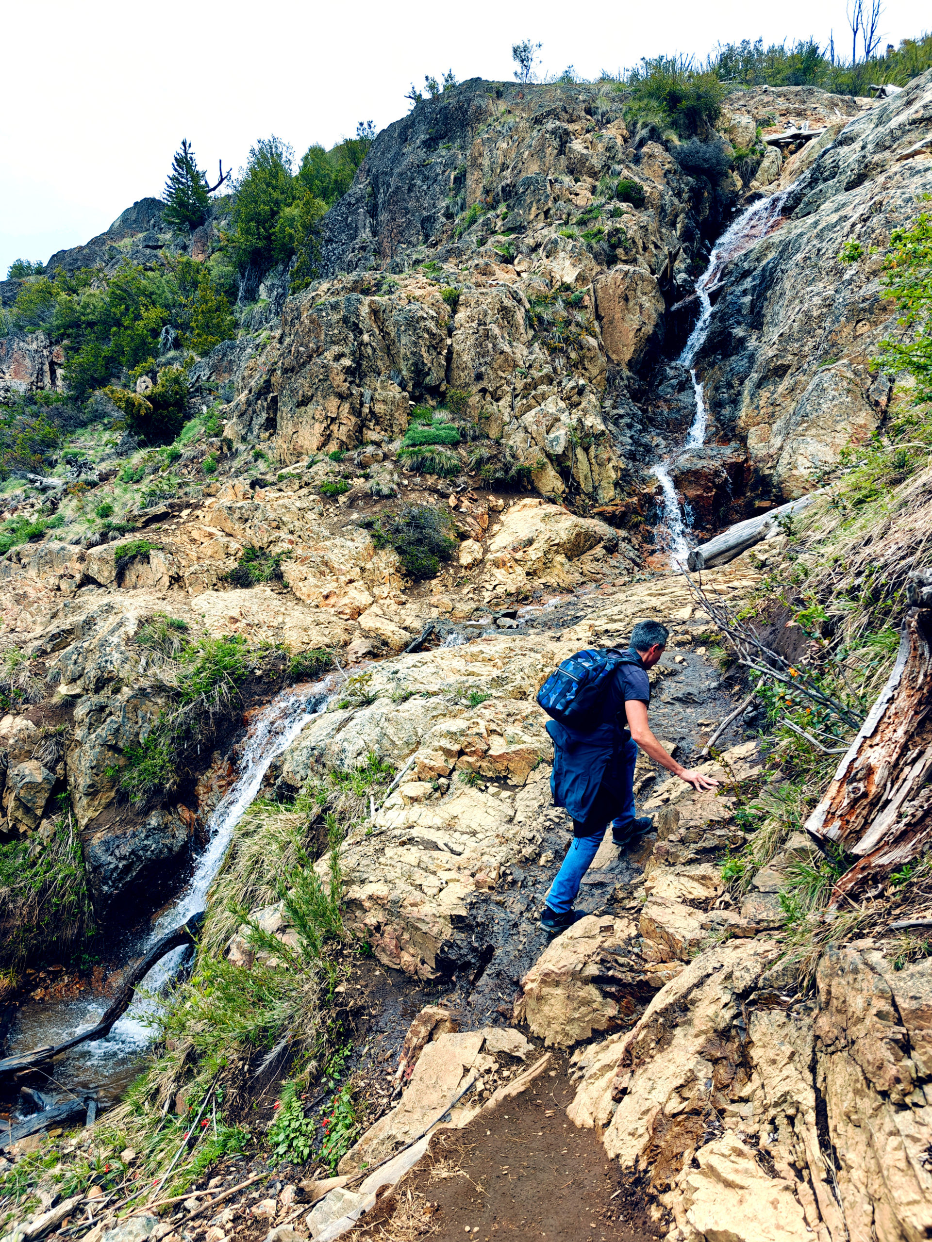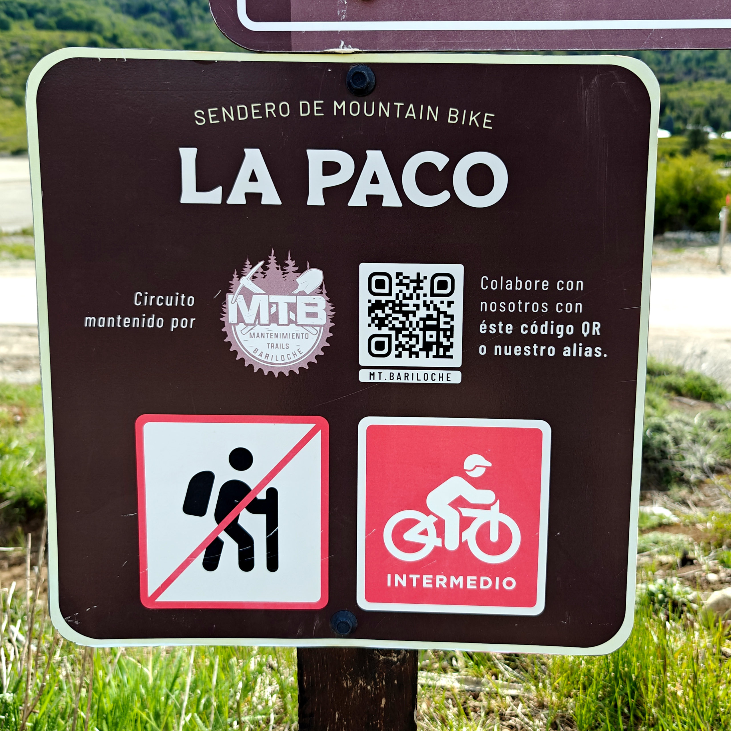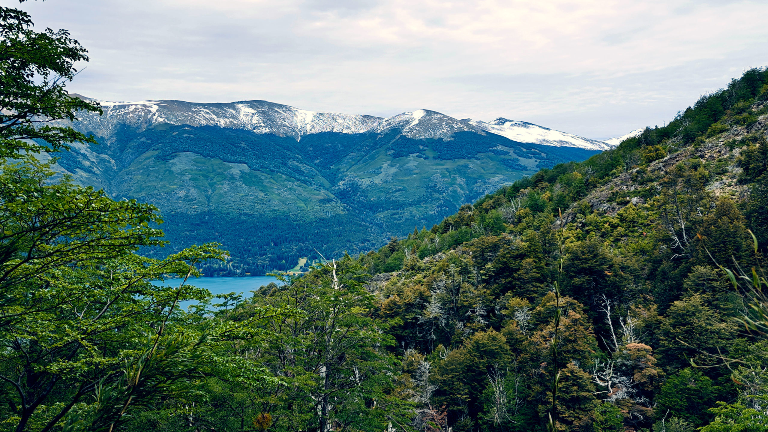 Het Franse koppel had een kortere, minder uitdagende route uitgestippeld van 14 km. Die vond ik ook vrij snel terug in Wikiloc, en we besloten van samen te vertrekken. We liepen eerst naar een informatiepunt om te vragen of de trail wel open was (soms zijn trails gesloten o.w.v. slechte weeromstandigheden of andere problemen) en er bleek geen probleem te zijn. We vertrokken dan samen op weg naar het beginpunt. Dat lag aan het einde van de straat waar de supermarkt ook lag en toen we daar passeerden, kwam plots de vrouw van achter de kassa uit de winkel gelopen en riep ons achterna: “funciona ahora, funciona ahora” (het werkt nu!). Bijzonder vriendelijk dat ze die moeite deed. Wij dus opnieuw naar binnen en nu konden we inderdaad onze kaart opladen tot het maximum. We zouden dus vanavond met de bus terug naar Bariloche kunnen.