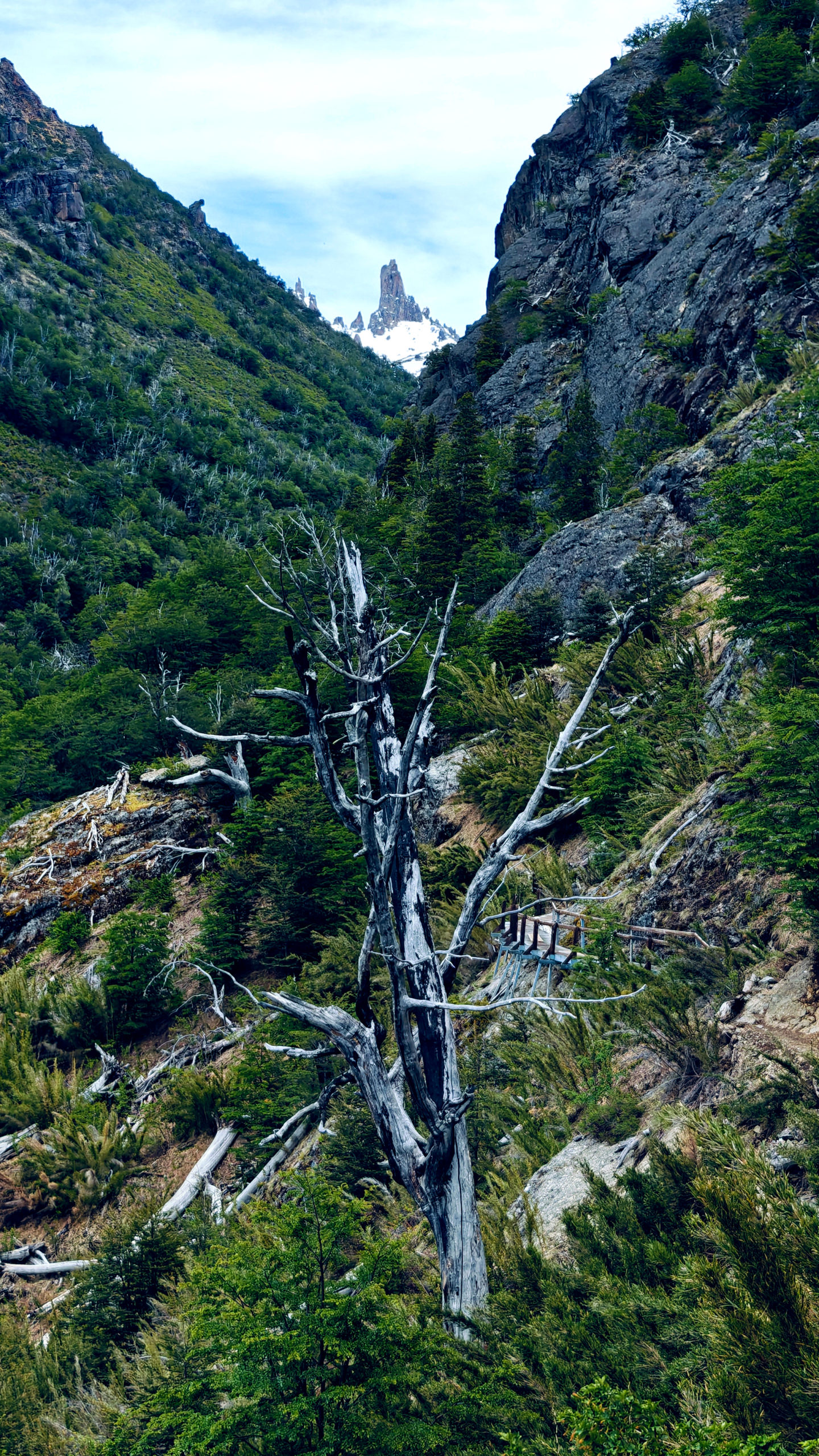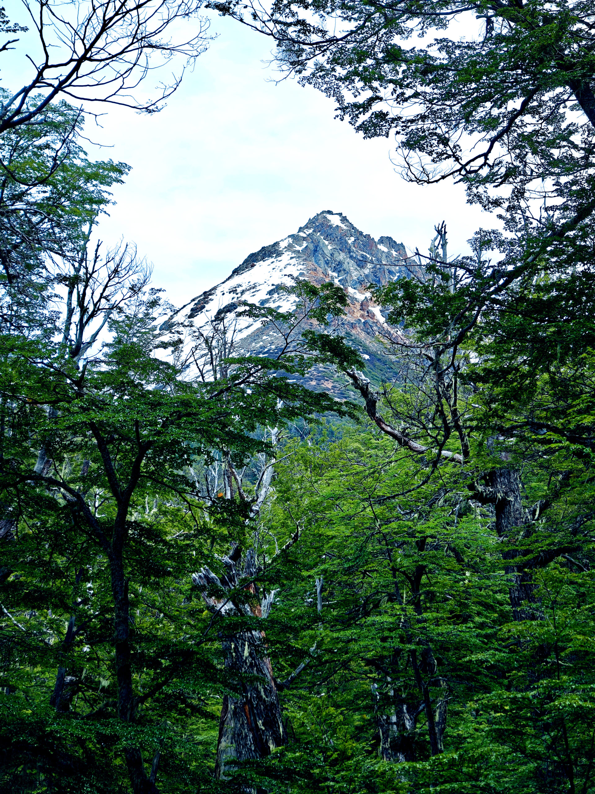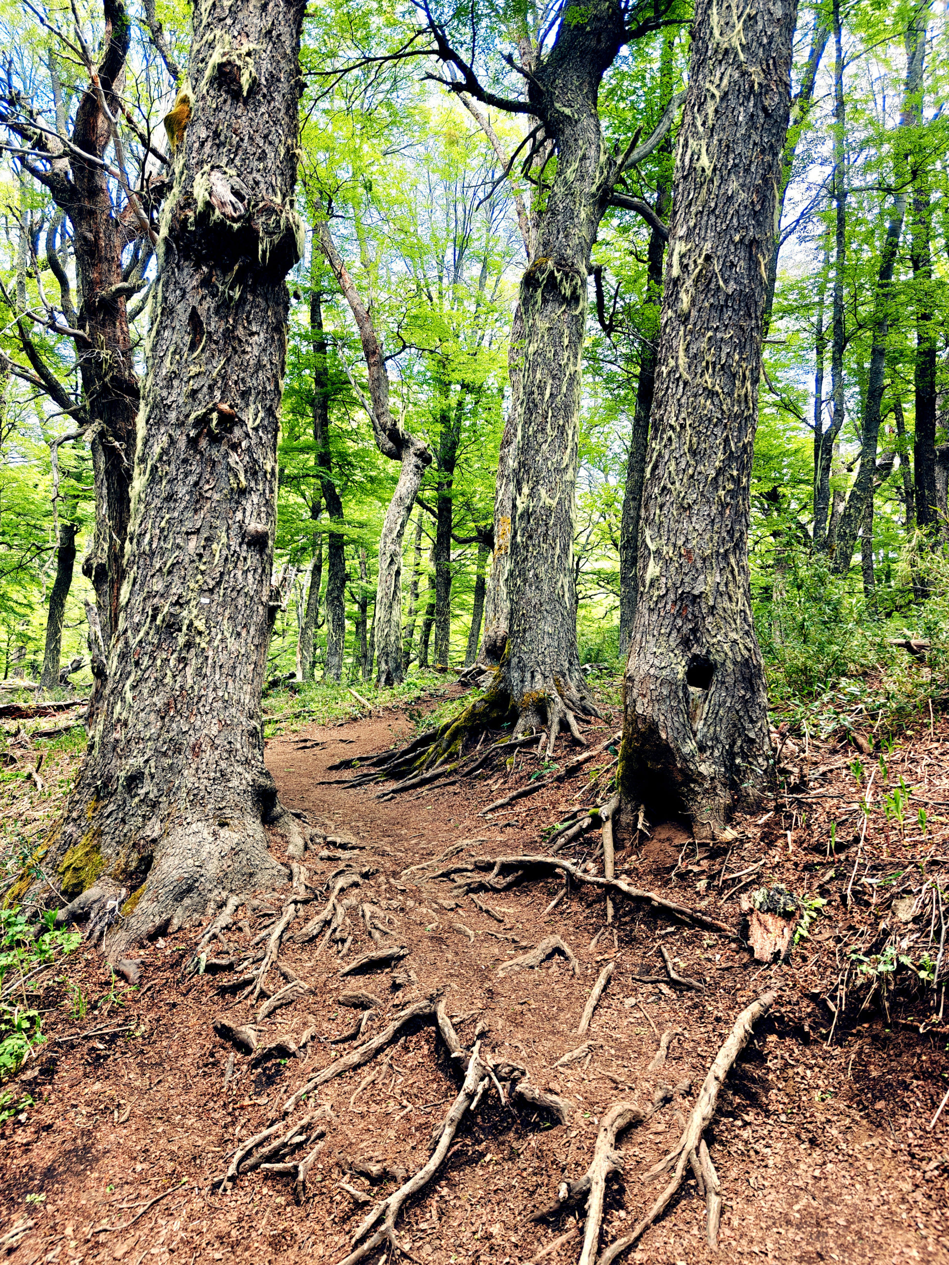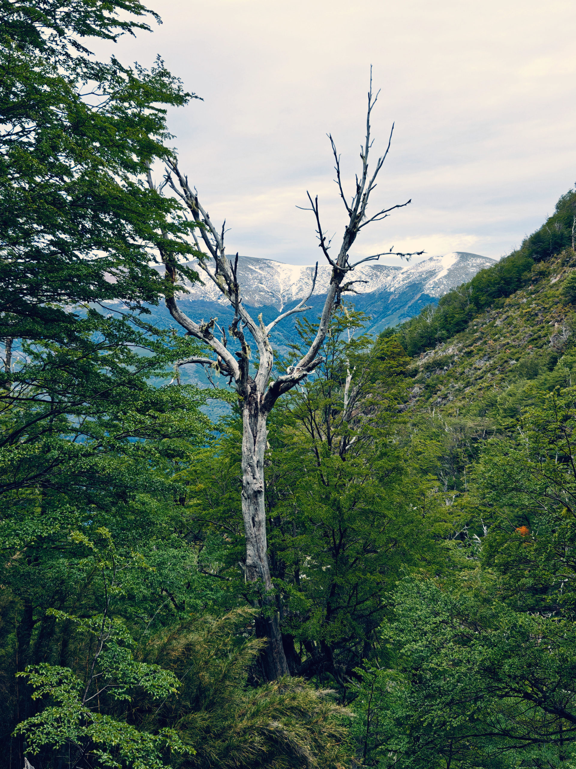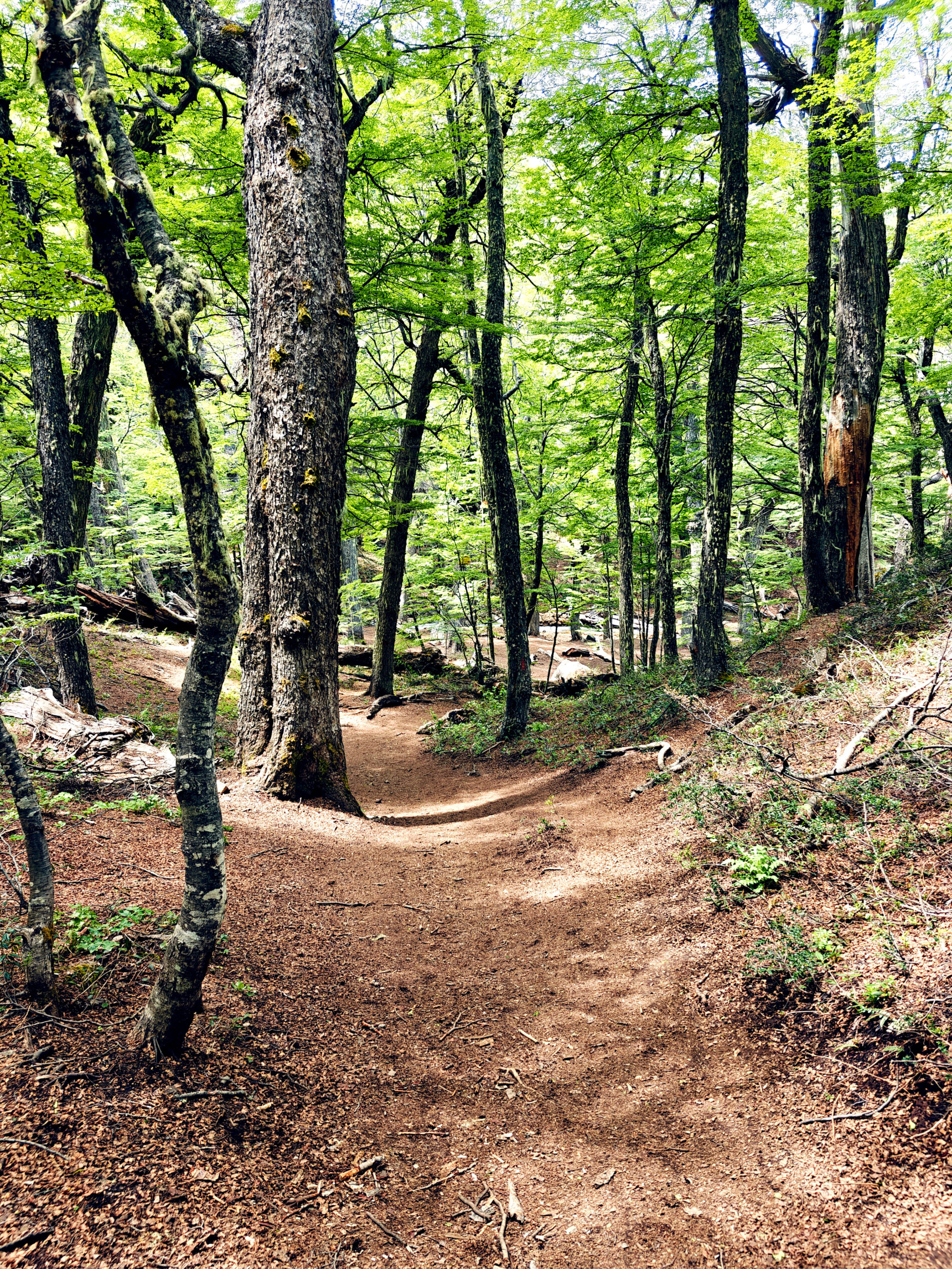 Na 7 km moesten we via een ander pad terug naar Villa Catedral, maar we wilden toch nog een stukje van de oorspronkelijke trail doen, in de hoop om een nog beter zicht op de bergen te krijgen, ook al omdat we dicht tegen de sneeuwgrens leken te komen. Op de kaart zagen we een berghut gemarkeerd en we zijn tot dat punt geklommen, maar een mooi uitzicht kregen we niet te zien. Het bos waarin we liepen was wel heel mooi. Bij die eerste berghut hebben we dan maar besloten op onze stappen terug te keren tot bij de splitsing, want het was al behoorlijk pittig geweest en we wisten dat vanaf de splitsing het ook nog 7 km zou zijn tot aan het beginpunt.