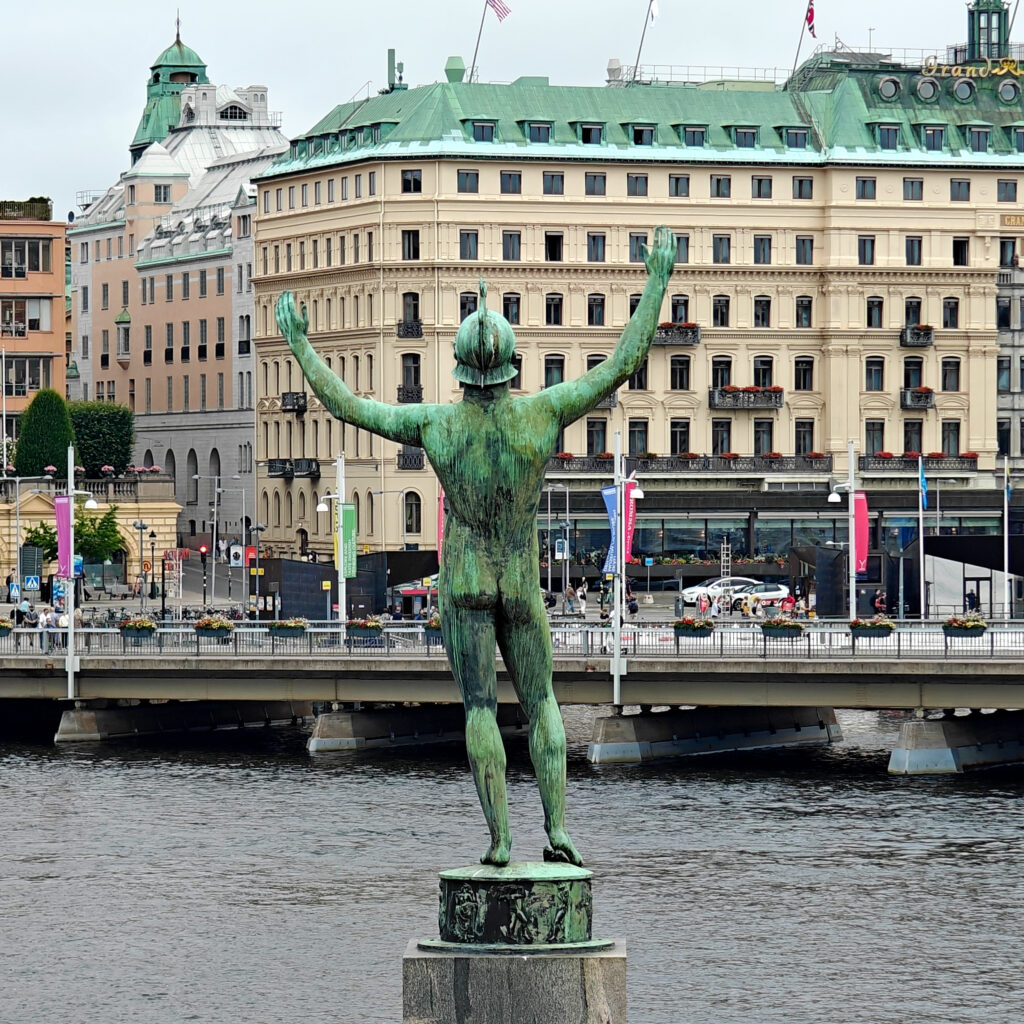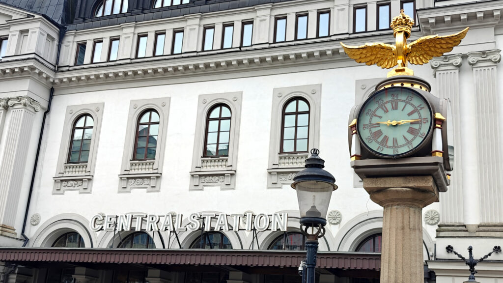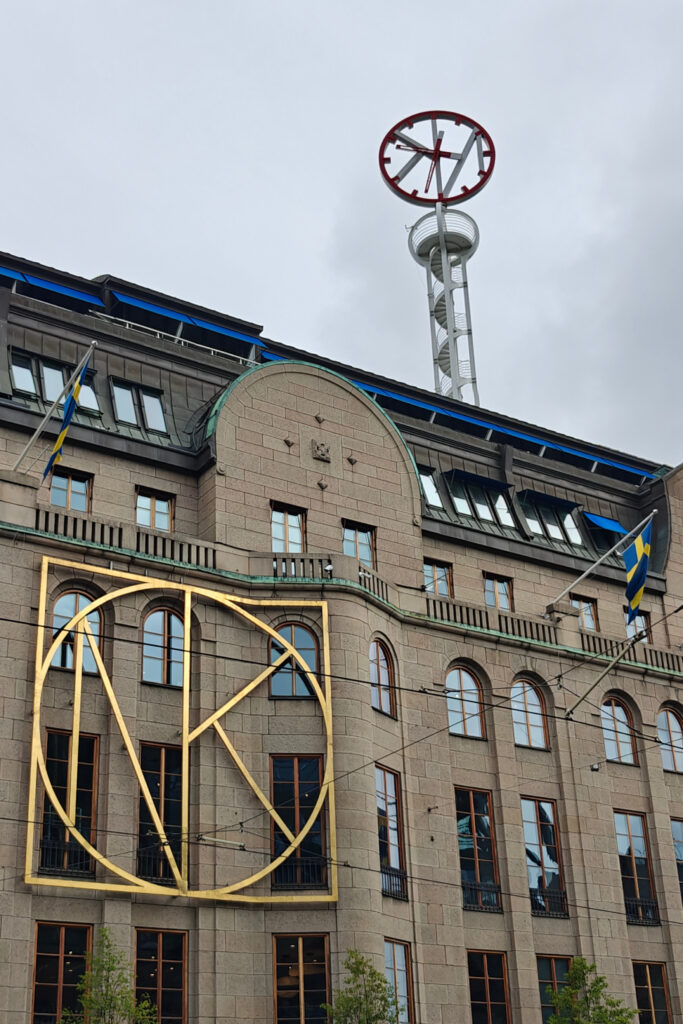 Het weer vanmorgen was ook maar wisselvallig, met veel grijze bewolking, wat ook al niet zo’n best beeld geeft van de stad. We begonnen een lange wandeling door het centrum aan het Centraal Station en liepen via de Kungsträdgården en het Riksdagshuset naar Gamla Stan, het oudste stadsdeel van Stockholm.