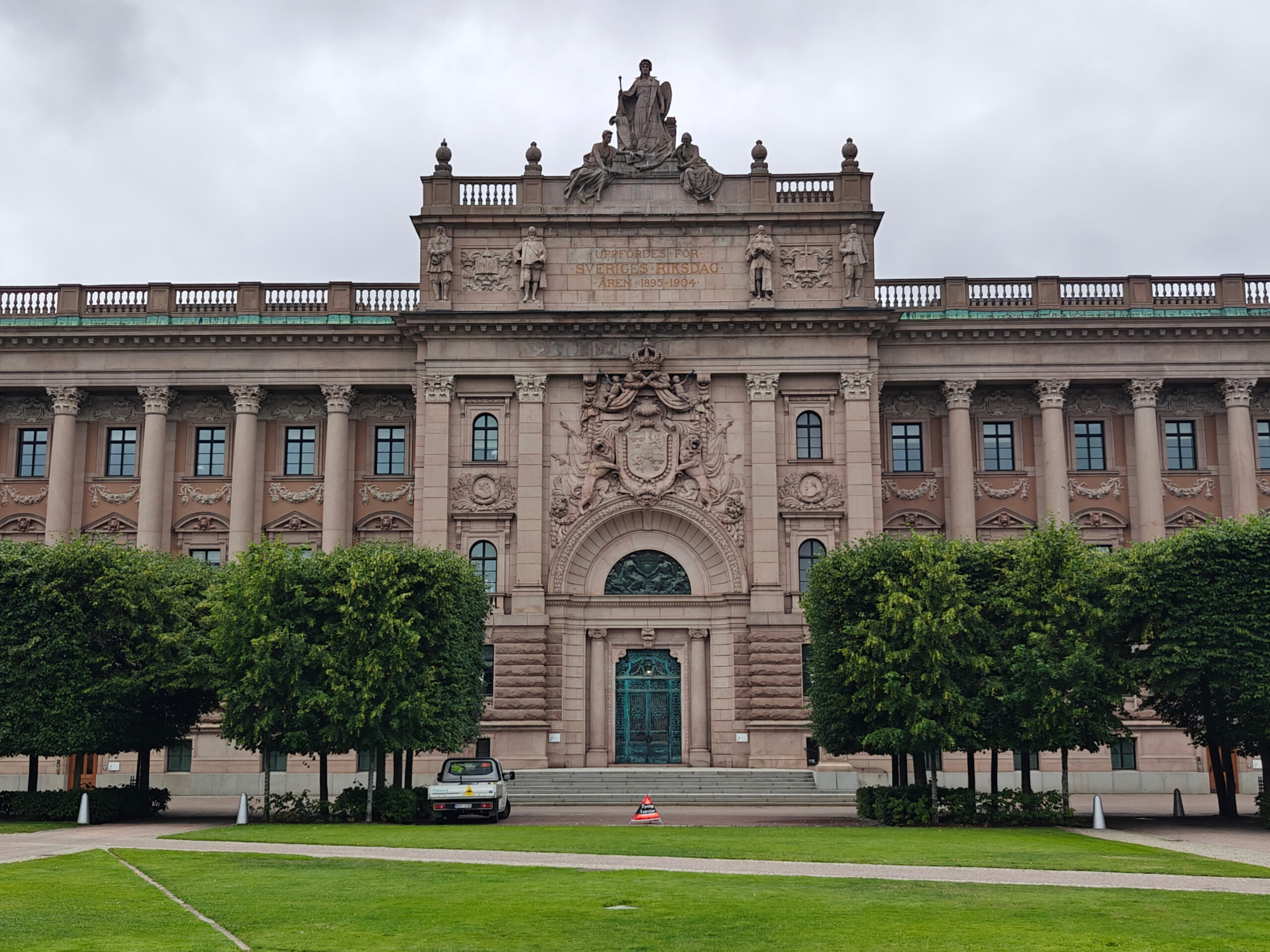 Het weer vanmorgen was ook maar wisselvallig, met veel grijze bewolking, wat ook al niet zo’n best beeld geeft van de stad. We begonnen een lange wandeling door het centrum aan het Centraal Station en liepen via de Kungsträdgården en het Riksdagshuset naar Gamla Stan, het oudste stadsdeel van Stockholm.
