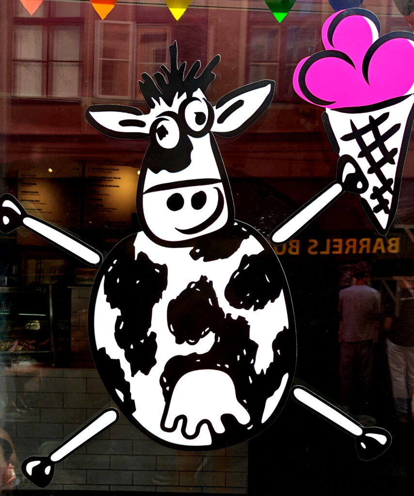 We bleven uiteindelijk minder lang dan voorzien in het Nationaal museum, en dus hadden we nog ruim een half uur over. We besloten om de wandeling in Gamla Stan die we eergisteren in de motregen deden, nog eens over te doen nu de zon overvloedig scheen, omdat dat misschien mooiere foto’s zou opleveren. Maar ik heb geen nieuwe foto’s meer gemaakt: het resultaat bleef min of meer hetzelfde en ik had sowieso het verslag over die dag al gepost op de blog. Ik zag het niet zitten om daar alle foto’s te vervangen door nieuwe foto’s die amper verschilden. Allen op weg naar Gamla Stan zag ik nog een paar mooie, leuke of absurde dingen: