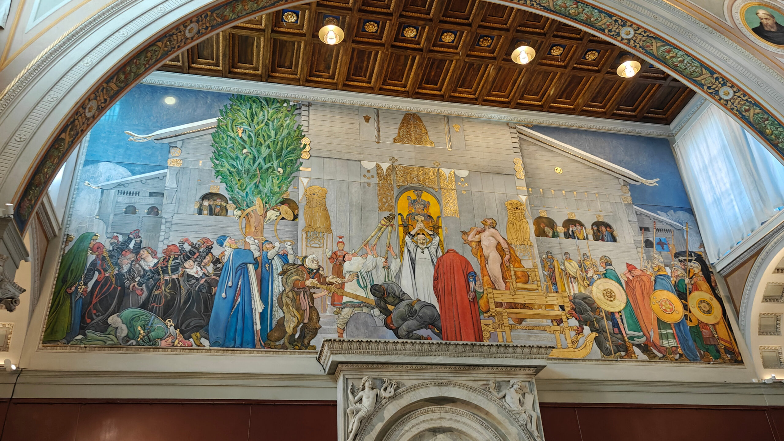 Dan namen we de bus naar het Nationaal museum. We hadden vanmorgen nog speciaal de app van het museum gedownload. Dat bleek vergeefse moeite: de app wilde niet starten als we de audiogids voor de tijdelijke tentoonstelling selecteerden. We deden navraag bij een suppoost, die voorstelde de app te verwijderen en opnieuw te installeren, wat we deden, maar wat niet hielp. Even later kwam een andere museummedewerker kijken, maar die kon ook niet meer vertellen dan “it is supposed to work”. Niet dus. We hadden intussen al door die tijdelijke tentoonstelling gewandeld en gemerkt dat er vooral middelmatige en zelfs slechte werken hingen, dus we lieten het voor wat het was. De andere audiogids, voor de permanente tentoonstelling, werkte wel, maar was ook een teleurstelling. Het was verre van duidelijk waar de werken die besproken werden precies hingen, dus het was vooral zoeken terwijl je kris-kras door de zalen loopt. En na de bovenste verdieping, waar de audiogids begonnen was, eindigde die doodleuk met de melding “we suggest that you discover the other floors on your own”. We hebben het al vaker gemerkt deze reis, maar hier was het echt frappant: waardeloos, die app/audiogids. En wellicht heeft het nog veel gekost om die te maken ook.