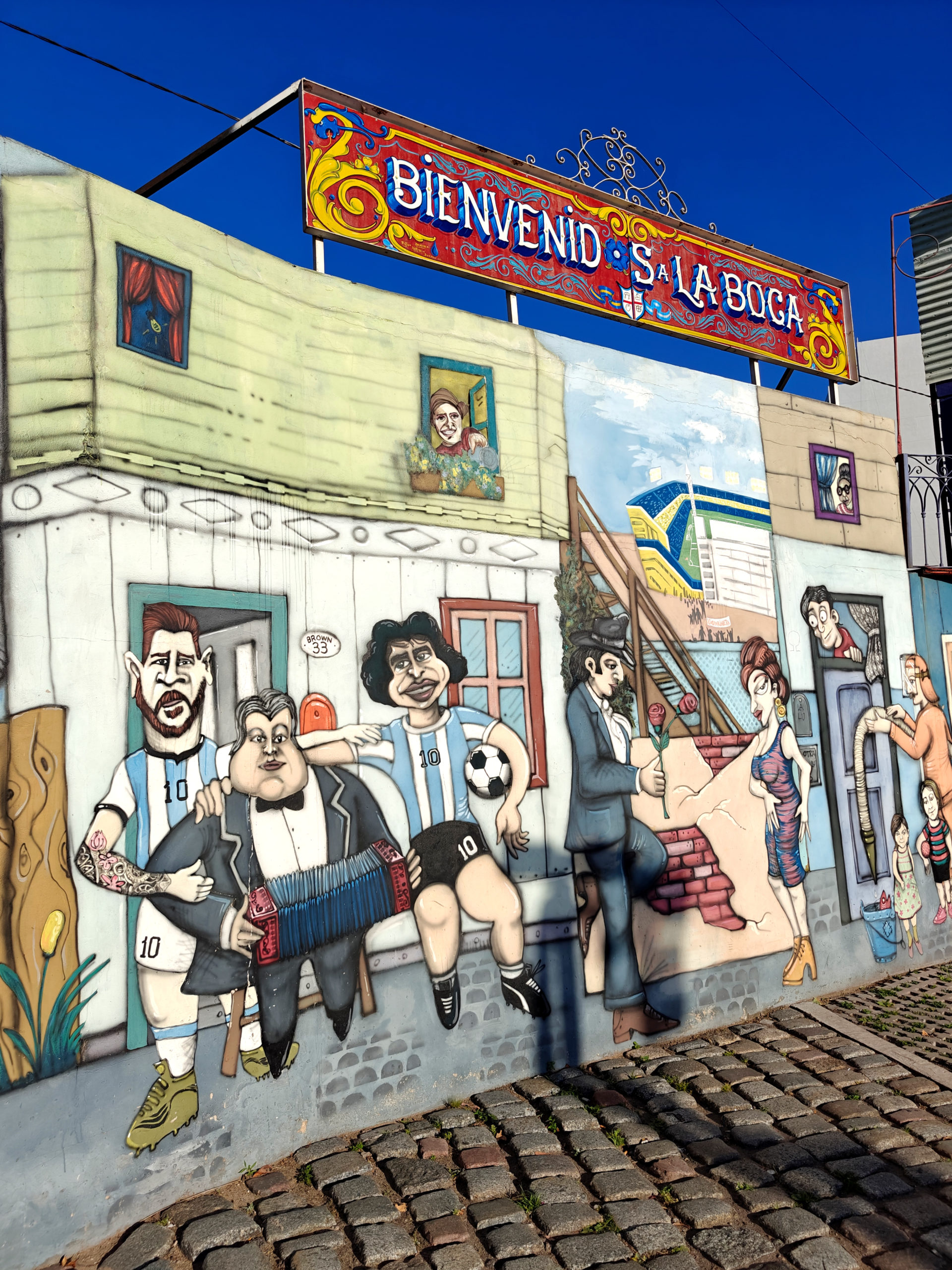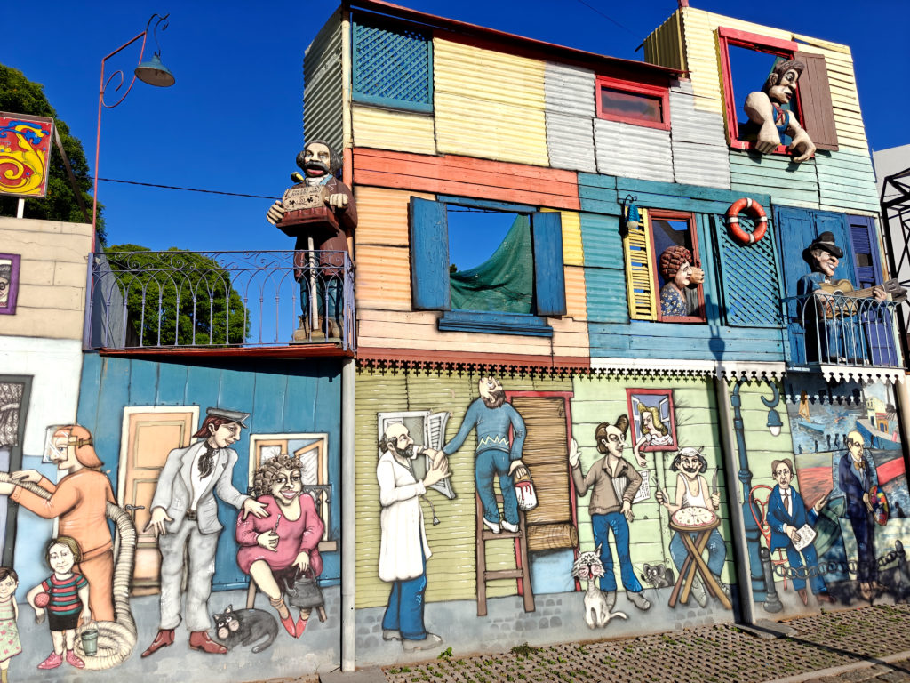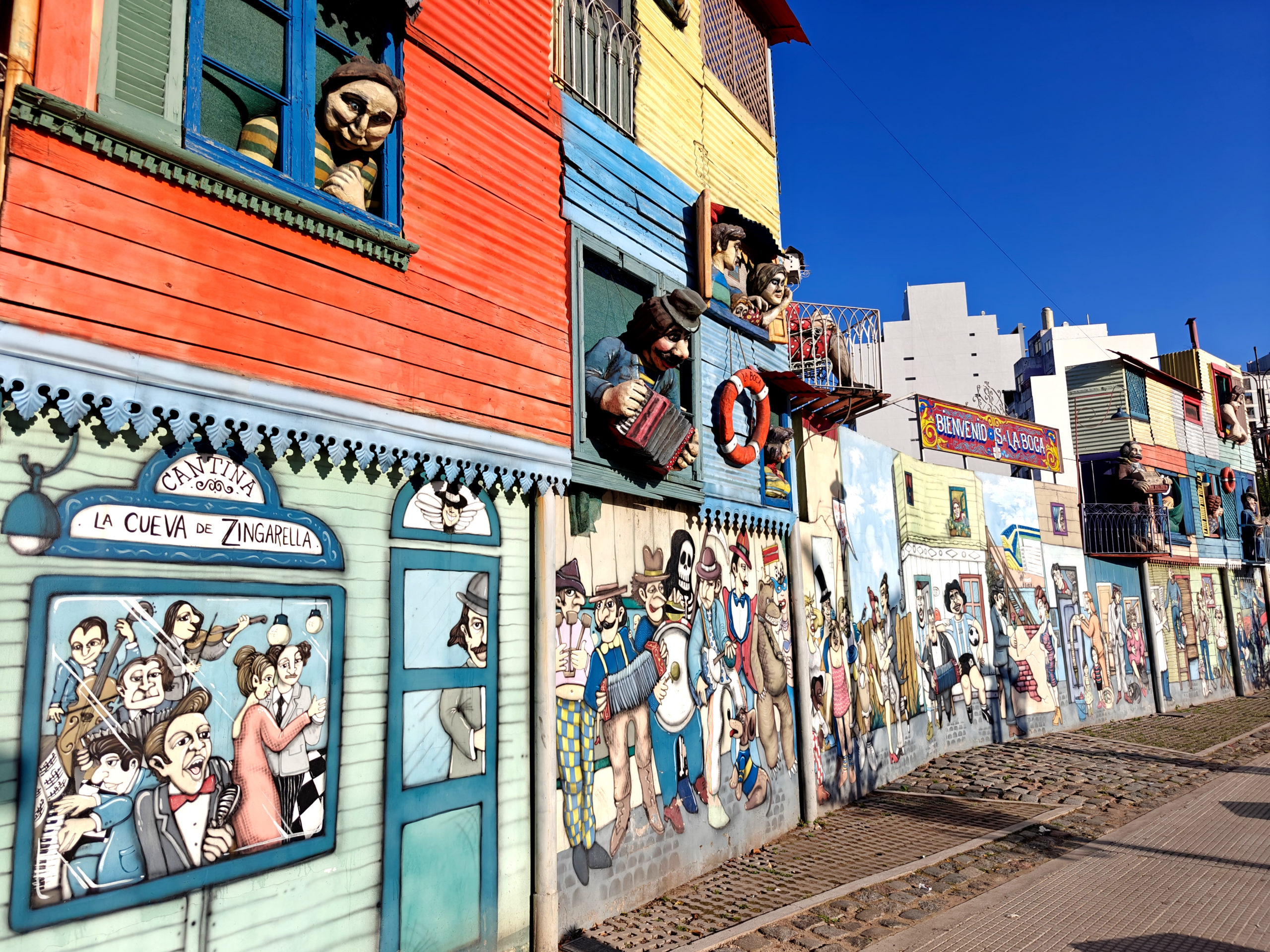 Ernaast vind je de Maqueta Barrio La Boca: een driedimensionale, karikaturale muurschildering van Omar Gasparini. Dat is een beeldhouwer en decorontwerper voor het flamboyante theatergezelschap Catalinas Sur. Zijn Mural Escenográfico verbeeldt op levendige wijze de geschiedenis van La Boca. Met sloopmaterialen afkomstig van de huizen in de wijk heeft hij over de lengte van een straat een gevel gecreëerd waarmee hij de identiteit van de wijk een gezicht heeft gegeven aan de hand van nationale iconen als de componist Juan de Dios Filiberto (1885-1964) en de voetballegende Diego Maradona (1960-2020), maar vooral ook brandweerlieden, havenarbeiders, dronkaards, roddelaars, prostituees en tal van andere figuren.