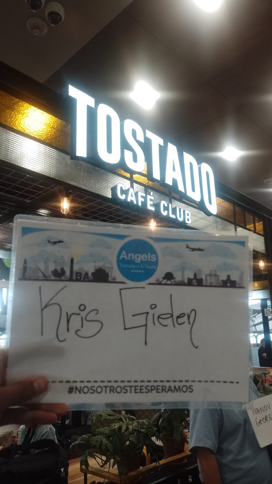 In Buenos Aires had ik opnieuw geopteerd voor een luchthaventaxi via booking.com. Ik zei eerder al dat ik fan ben: je boekt en betaalt op voorhand, via booking.com, en als je landt krijg je een WhatsApp berichtje met de gegevens van je chauffeur. Die stuurde mij even later, toen we aan het wachten waren op de bagage, een berichtje met een foto waar hij precies aan het wachten was. Een goeie twintig minuten later stonden we aan het hotel.