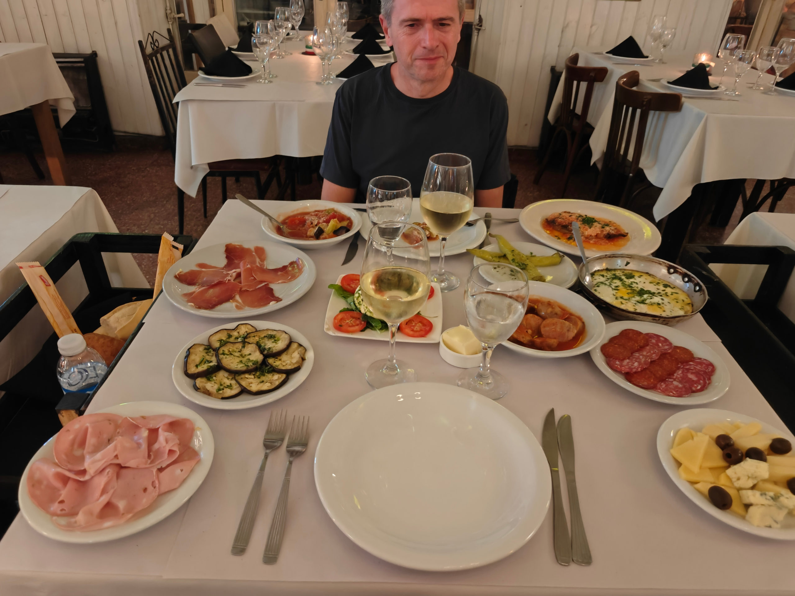 We kregen al snel een drietal bordjes met Italiaanse charcuterie. We gingen ervan uit dat dat het voorgerecht was, maar groot was onze verbazing toen er maar bordjes bleven bijkomen. In totaal stonden er uiteindelijk 11 borden op onze tafel. Lekker allemaal, maar eigenlijk veel te veel. En dan moesten de andere gangen nog komen.