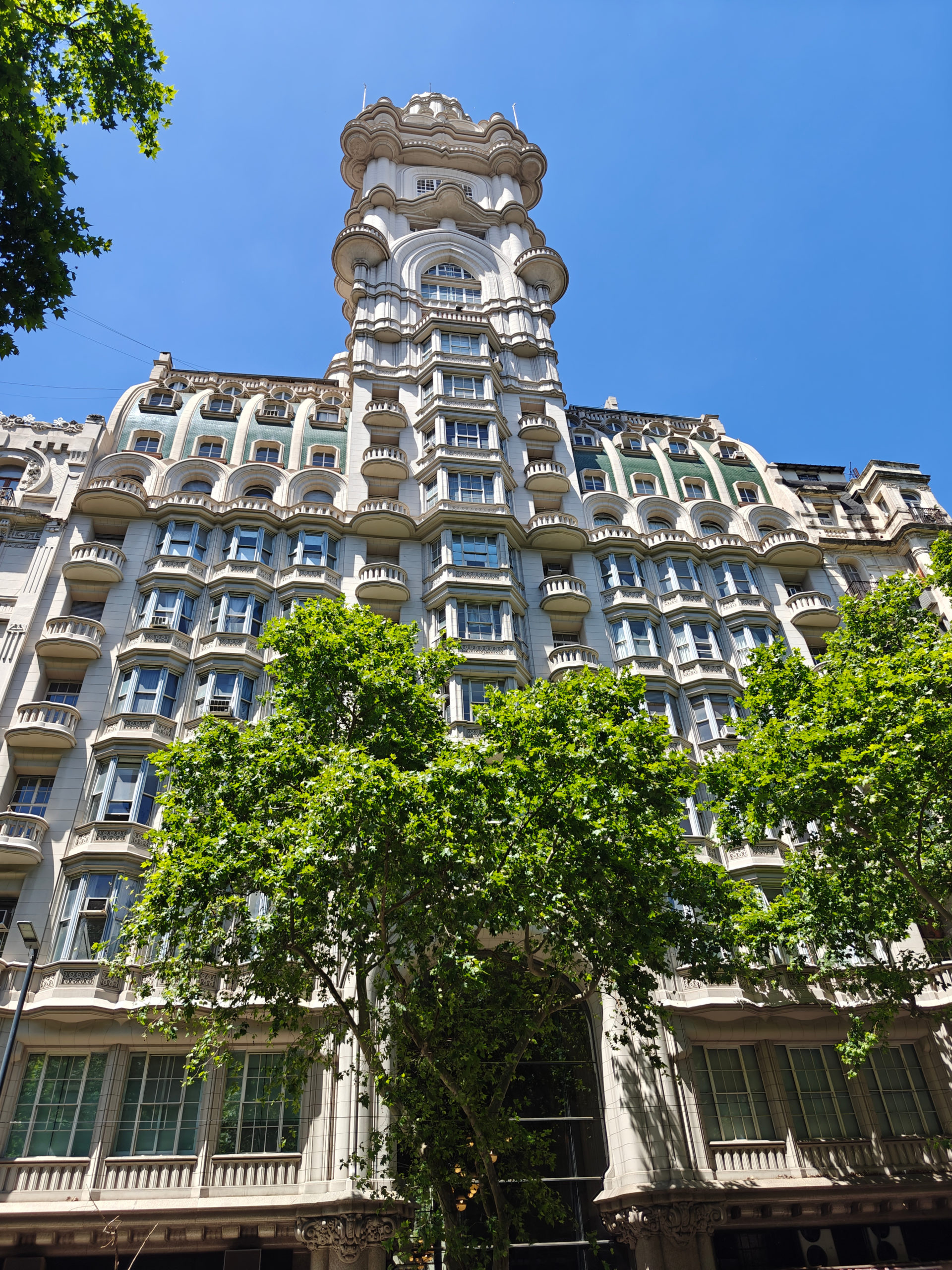 We liepen verder langs de Avenida de Mayo tot bij het Hotel Castelar. Het gebouw werd in 1928 geopend als Hotel Excelsior en werd ontworpen door de Italiaanse architect Mario Palanti – iemand die we later ook nog zouden tegenkomen. Meer recentelijk was het hotel de locatie van het dramatische aftreden van vice-president Carlos Álvarez op 6 oktober 2000, een mijlpaal die leidde tot het vertrek van president Fernando de la Rúa een jaar later. Fernando de la Rúa was president van Argentinië van 1999 tot 2001. Zijn presidentschap werd getekend door economische crisis en sociale onrust. De la Rúa kwam aan de macht met de belofte om de economische malaise en corruptie tegen te gaan, maar tijdens zijn bewind verergerde de financiële crisis dramatisch. De maatregelen van zijn regering, zoals bezuinigingen en het vasthouden aan de vaste wisselkoers met de dollar, verergerden de situatie. Eind 2001, te midden van hevige protesten en massale werkloosheid, trad hij uiteindelijk af en verliet hij het presidentieel paleis per helikopter. Zijn vertrek markeerde een dieptepunt in de Argentijnse economische geschiedenis.
