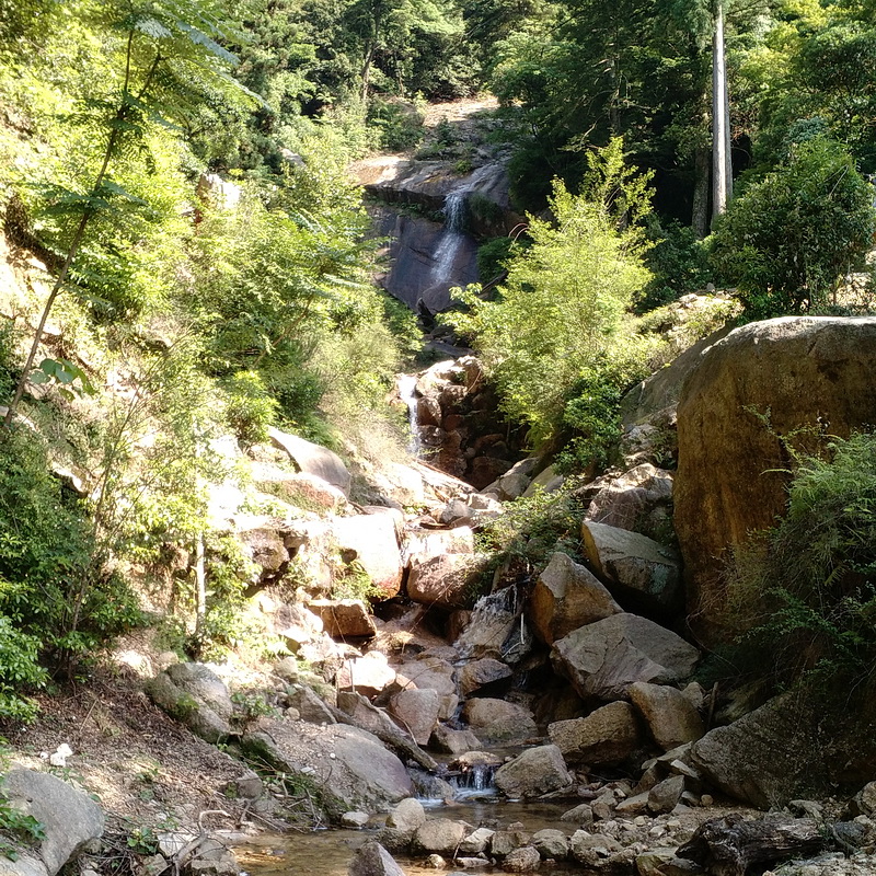 Je kan met de kabelbaan terug naar beneden, maar het is mooier om via de Daisho-in Hiking Track af te dalen. Dat deden we dan ook, en onderweg kwamen we nog wat mooie tempeltjes en een waterval tegen. Reken wel op ruim anderhalf uur stevig afdalen.