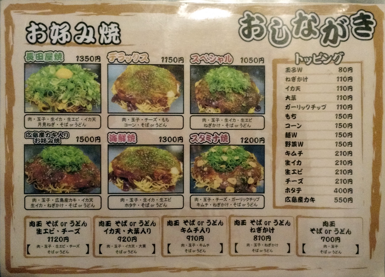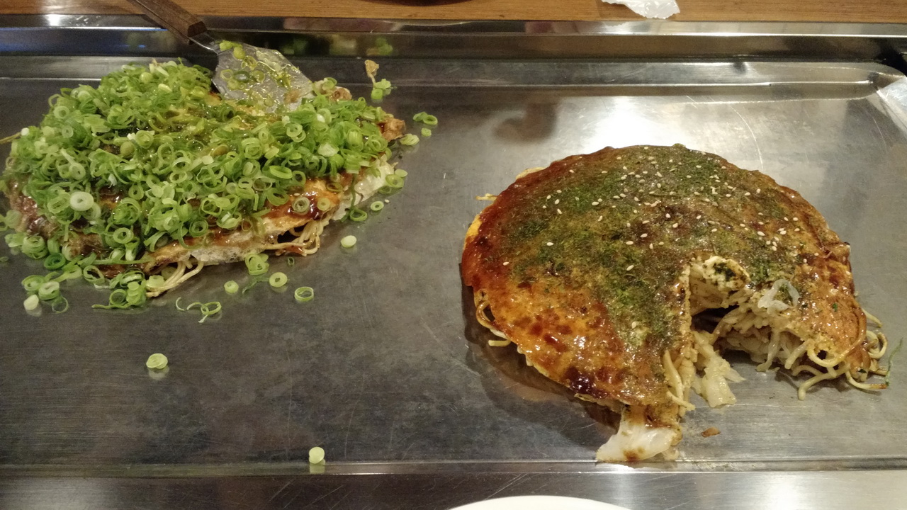 We gingen eten in het nummer 1 restaurant van Hiroshima, tenminste volgens TripAdvisor: お好み村 (Okonomimura – www.okonomimura.jp). Je krijgt er okonomiyaki, een soort hartige pannenkoek, met groenten, zeevruchten, varkensvlees en noedels. Niet slecht, maar dat dit het beste restaurant van de stad is, durven we toch te betwijfelen.