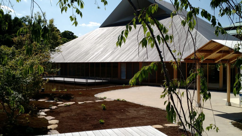 Naast de gerestaureerde huizen is er ook een gloednieuw gebouw, de “Naoshima Hall”, ntworpen door Hiroshi Sambuichi.