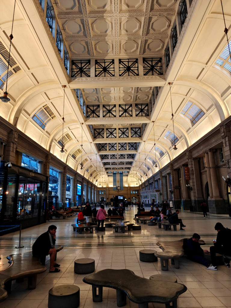 Omdat het nog steeds aan het stortregenen was, moesten we de planning van onze eerste dag al voor een stukje omgooien: de stadswandeling die Philippe had uitgestippeld, houden we voor later deze week – het weer ziet er vanaf morgen beter uit. We namen eerst de metro naar het station van Buenos Aires – Estación Retiro Mitre. Een mooi gebouw met vooral een heel mooie ruimte die vroeger het stationsbuffet was… maar intussen zit er een Burger King. We namen er enkel foto’s.
