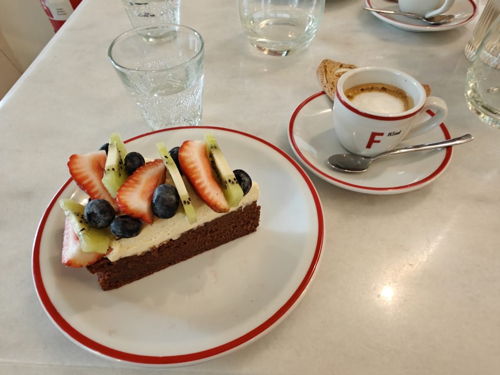 We wilden lunchen in Los Jardines de Las Barquin, de chique cafetaria van het museum, maar een van de suppoosten, waaraan we vroegen waar die precies was, zei meteen dat het “very expensive” was en dat we veel beter naar een ander café-restaurant vlakbij zouden gaan: Farinelli. Dat deden we dan ook en we aten er een erg lekkere Aztec wrap en een super lekker gebakje met een espresso. Zo konden we er weer een paar uur tegen.
