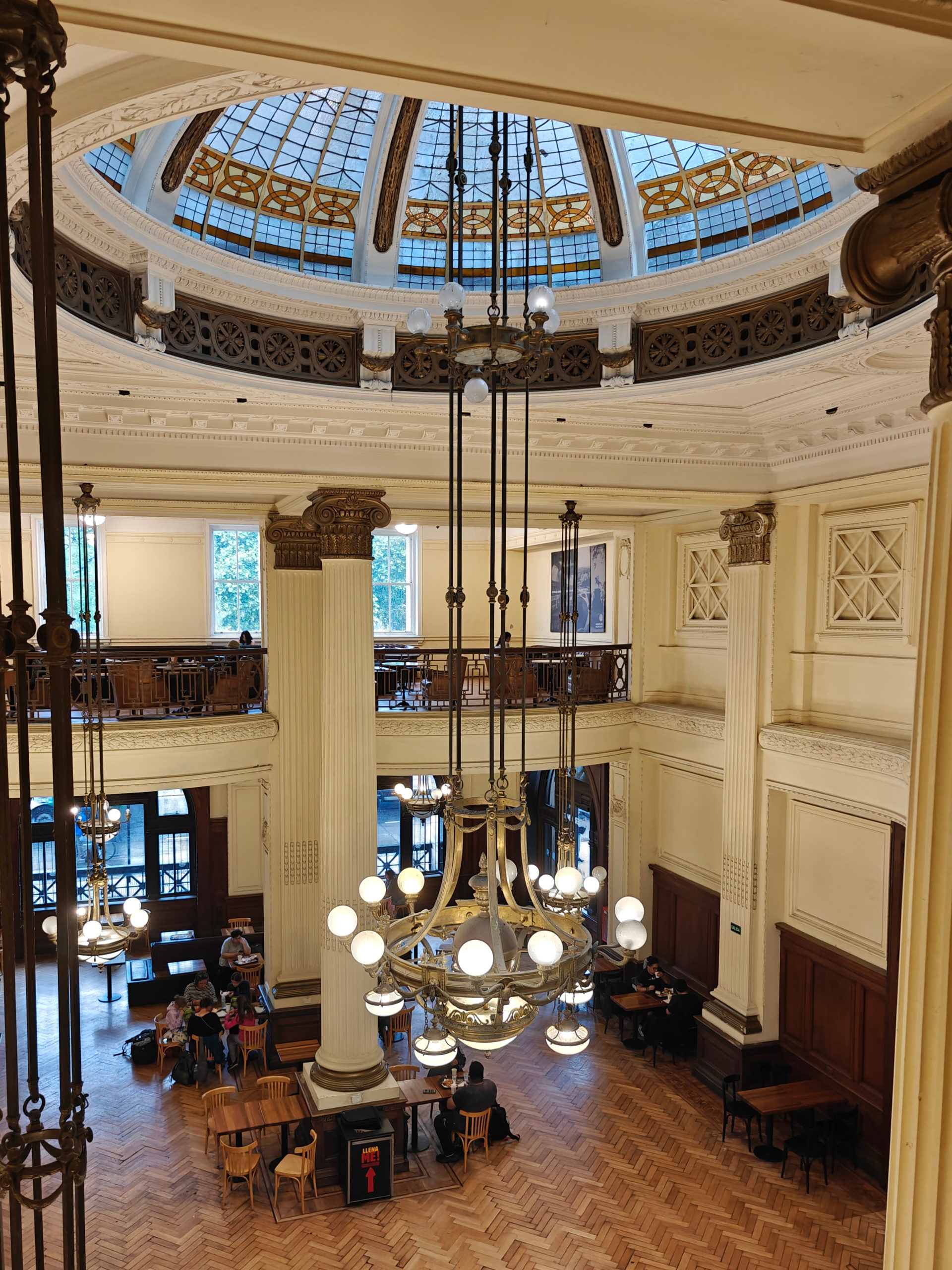 Omdat het nog steeds aan het stortregenen was, moesten we de planning van onze eerste dag al voor een stukje omgooien: de stadswandeling die Philippe had uitgestippeld, houden we voor later deze week – het weer ziet er vanaf morgen beter uit. We namen eerst de metro naar het station van Buenos Aires – Estación Retiro Mitre. Een mooi gebouw met vooral een heel mooie ruimte die vroeger het stationsbuffet was… maar intussen zit er een Burger King. We namen er enkel foto’s.