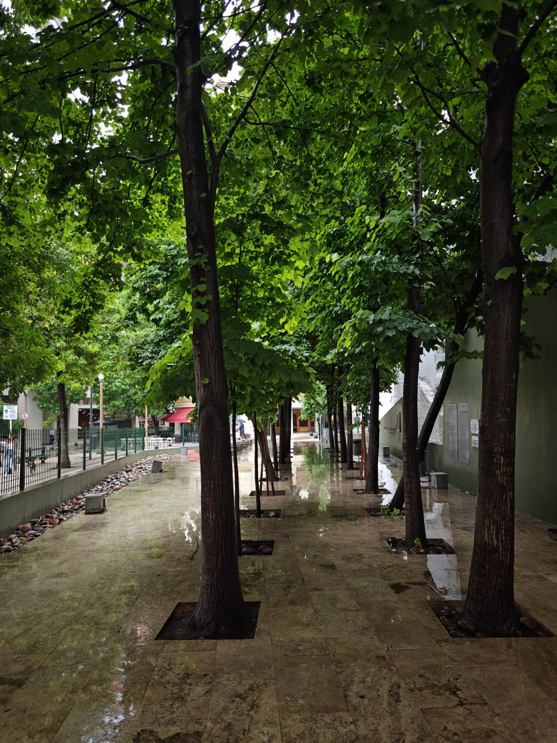 We deden een stukje van de wandeling in de buurt, met o.a. Plaza Embajada de Israel, waar ter nagedachtenis aan de slachtoffers die vielen bij een aanslag op de Israëlische ambassade in 1992, 22 lindebomen in twee parallelle rijen geplant zijn.