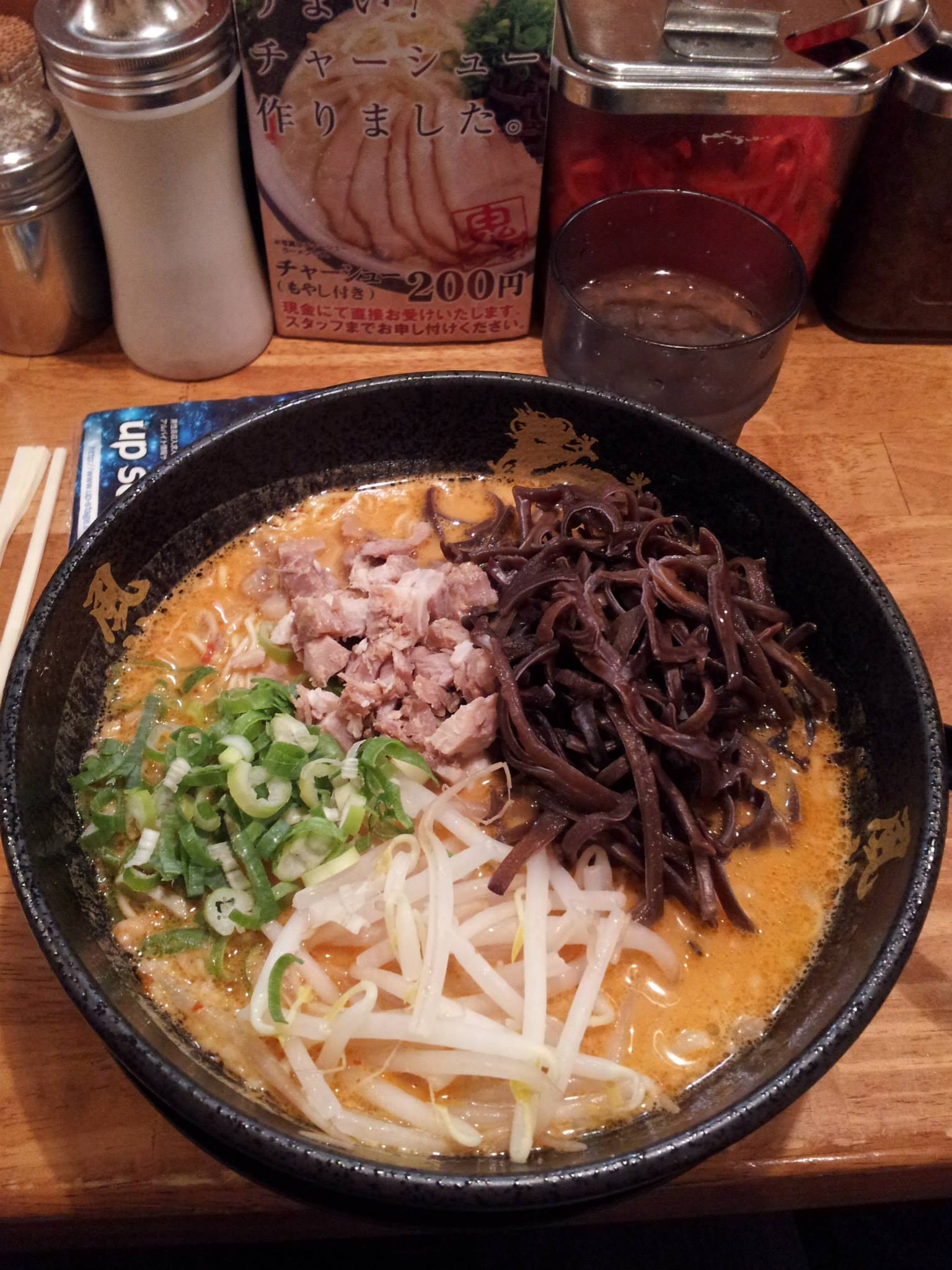 Dinner was vandaag Japanese fastfood…… eerst maak je een keuze met behulp van deze automaat, waar je ook betaalt, en dan krijg je een ticketje…… waarna 5 minuten later dit voor je neus staat