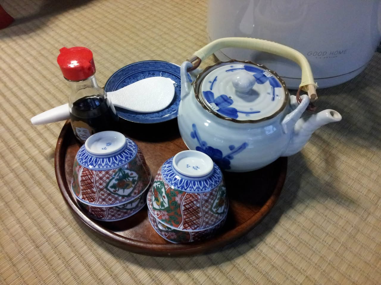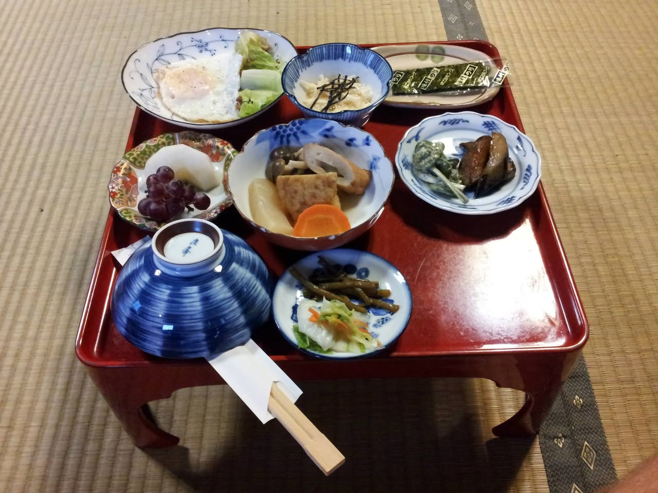 ontbijt bij Gassho Minshuku Nakayahet ontbijt bij Gassho Minshuku Nakaya was al even lekker als het avondetenaltijd en overal… rijst en thee!