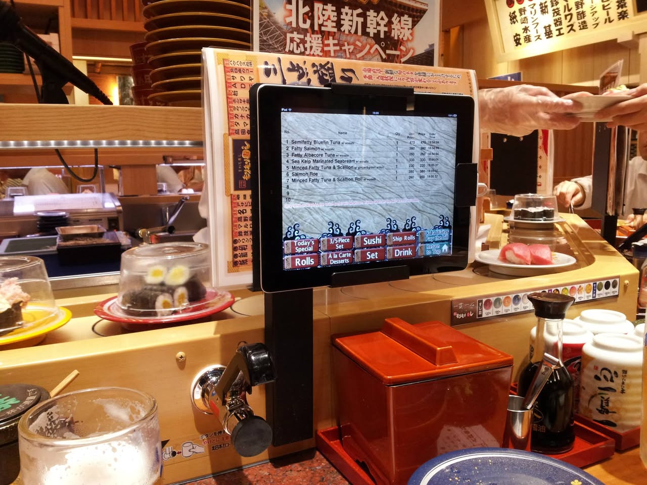 Geweldige sushi-ervaring vanavond: bij Morimorizushi Kanazawa-ekimaeten bestel je via iPads. De bestelling komt dan met een treintje naar je toe. We hebben hier de lekkerste shusi ooit gegeten. (google maps)