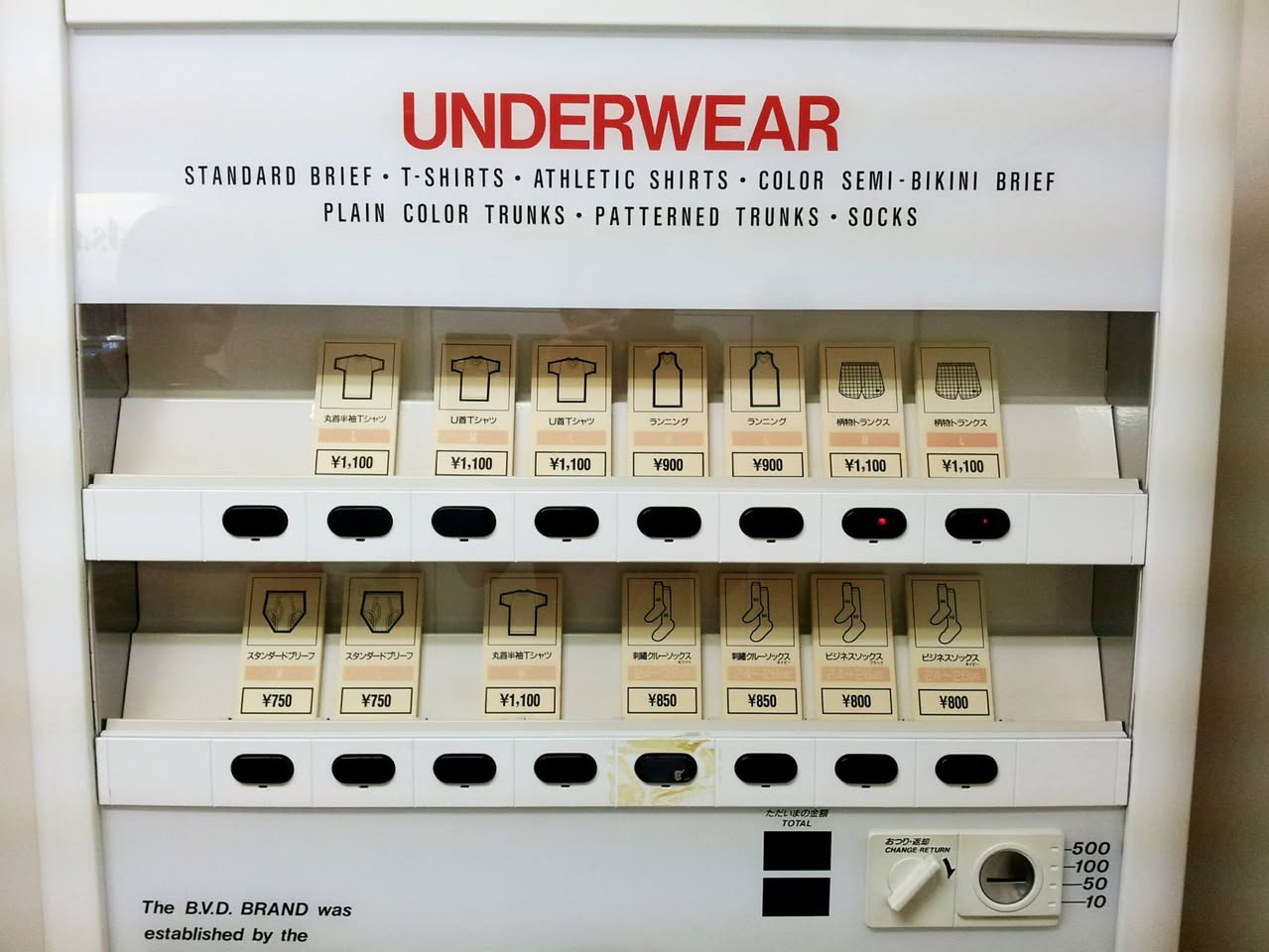 dinner in een Japanese Seafood Barbeque (sic)plaats waar we wat de op vorige foto staat, gegeten hebbenIk heb al veel automaten gezien in dit land, maar deze slaat toch wel alles: je kan hier ook ondergoed uit de automaat halen
