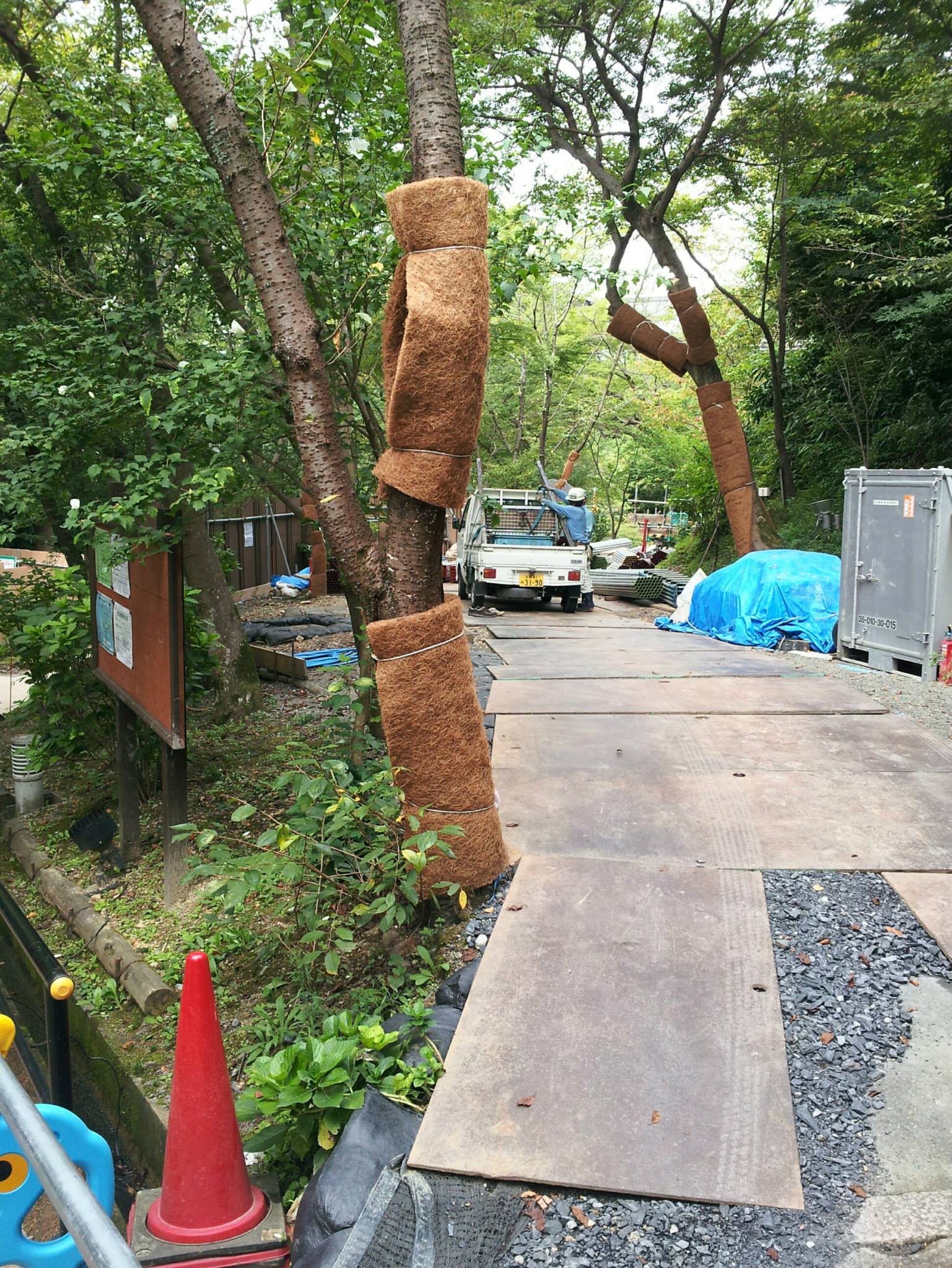 Vannacht liet Trami dan eindelijk van zich horen. Letterlijk, met heel veel wind en regen. Volgens het Japans meteorologisch instituut is al 25 jaar geleden dat er in Anbo, waar we verblijven, nog zoveel regen is gevallen in 1 nacht. Maar toen we opstonden was het windstil en scheen de zon. De weerapp op onze telefoon maakte snel duidelijk dat we ons in het oog van de tyfoon bevonden. Schade aan het huis was er niet, we zagen buiten wel afgerukte takken en omgewaaide borden.