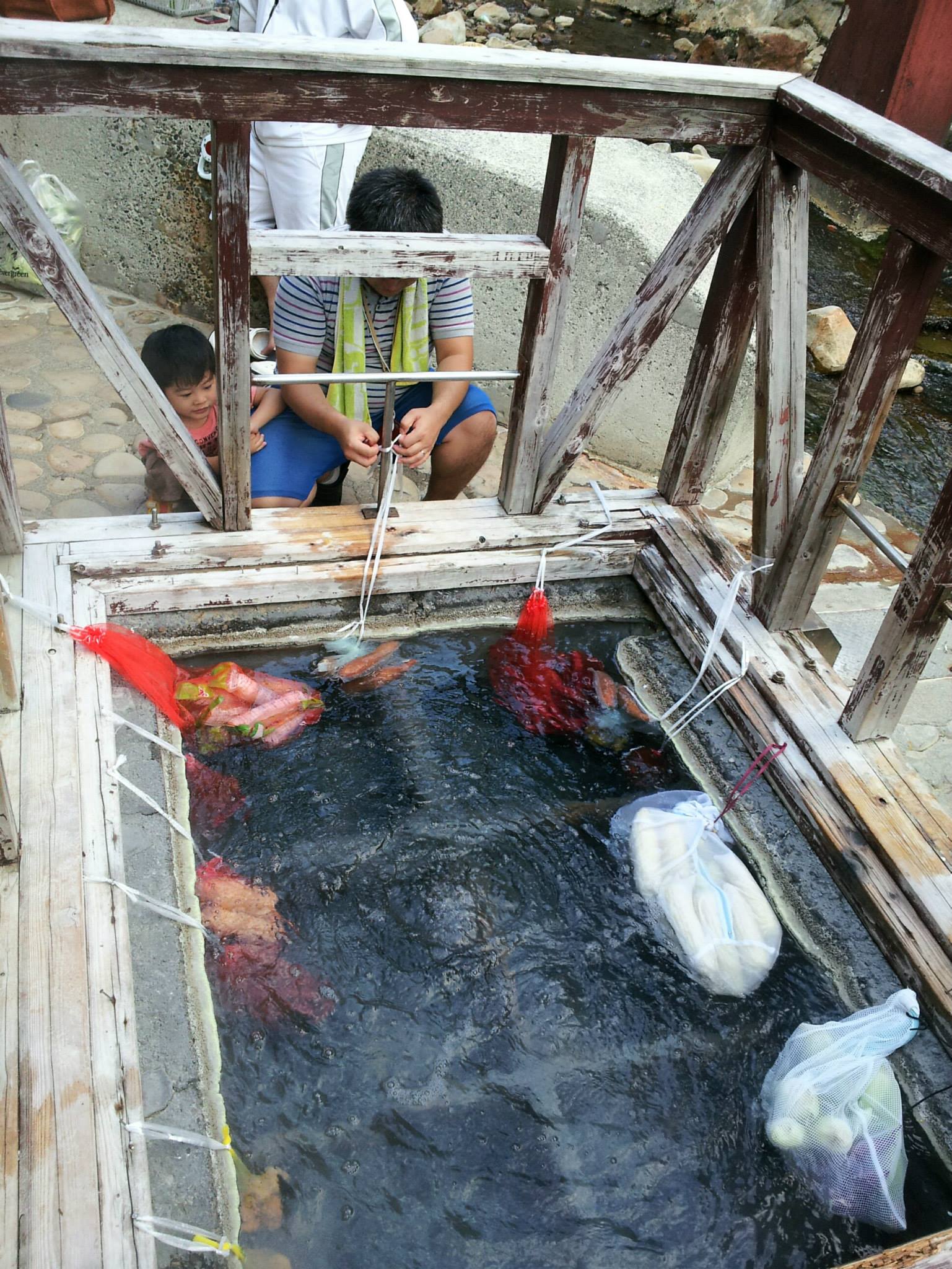 Na de Pelgrimstocht waren we toe aan een onsen. In Yunomine gebruik je daarvoor een automaat 🙂In Yunomine is het water dat uit de berg komt zo heet, dat je er een ei in kan koken…… maar wel opletten dat de kraaien niet met je eieren gaan vliegen 🙂… of je kookt andere dingen, dat kan ook 🙂“public cooking place”