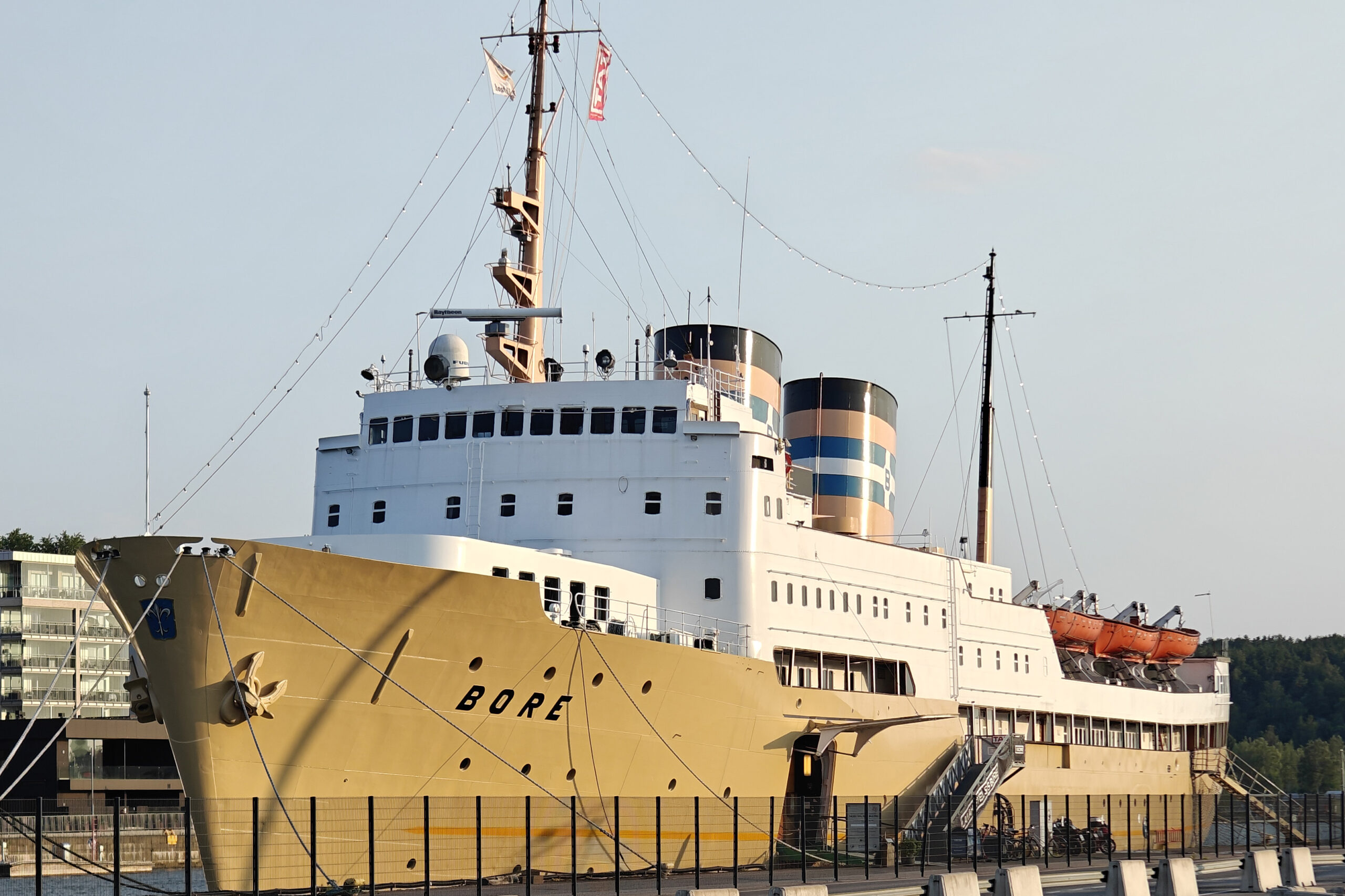 Vanavond slapen we dus op een boot: De S/S Bore is een historisch passagiers- en autoveerboot die in 1960 werd gebouwd in Zweden voor de Bore Steamship Company uit Finland. Het schip was bijzonder omdat het de laatste commerciële stoompassagiersschip was dat in Scandinavië werd gebouwd, en de eerste veerboot op de route tussen Finland en Zweden waarop auto’s konden worden meegenomen via een ro-ro-faciliteit (roll-on/roll-off). Sinds 2010 ligt het schip permanent afgemeerd in Turku waar het dienst doet als museum- en hotelschip.