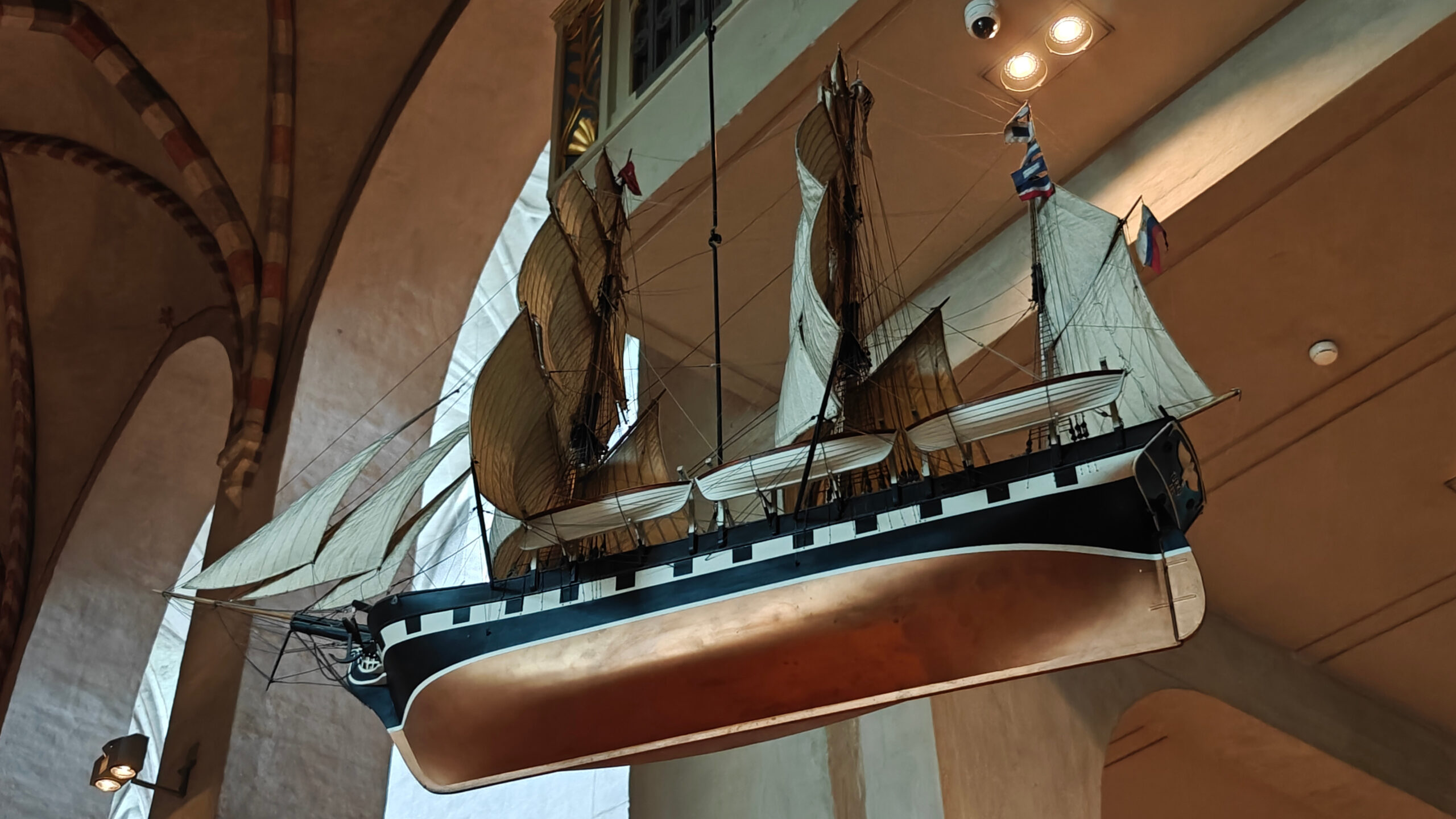 Daarna bezochten we Turku Cathedral, en die is zo mogelijk nog minder de moeite waard. De buitenkant al helemaal niet, en binnenin is vooral het miniatuurmodel van een schip dat in de kerk hangt, dat de aandacht trekt.