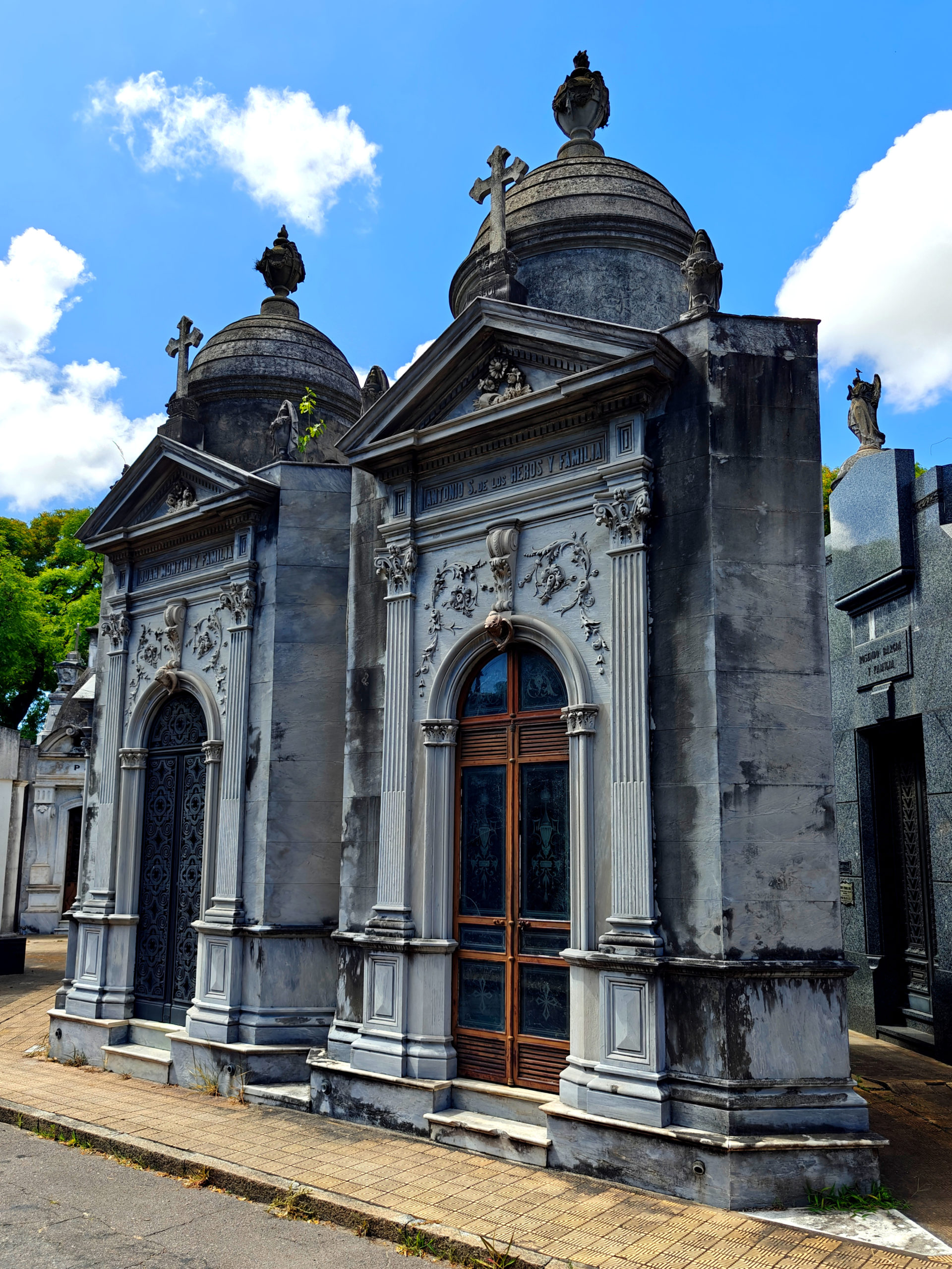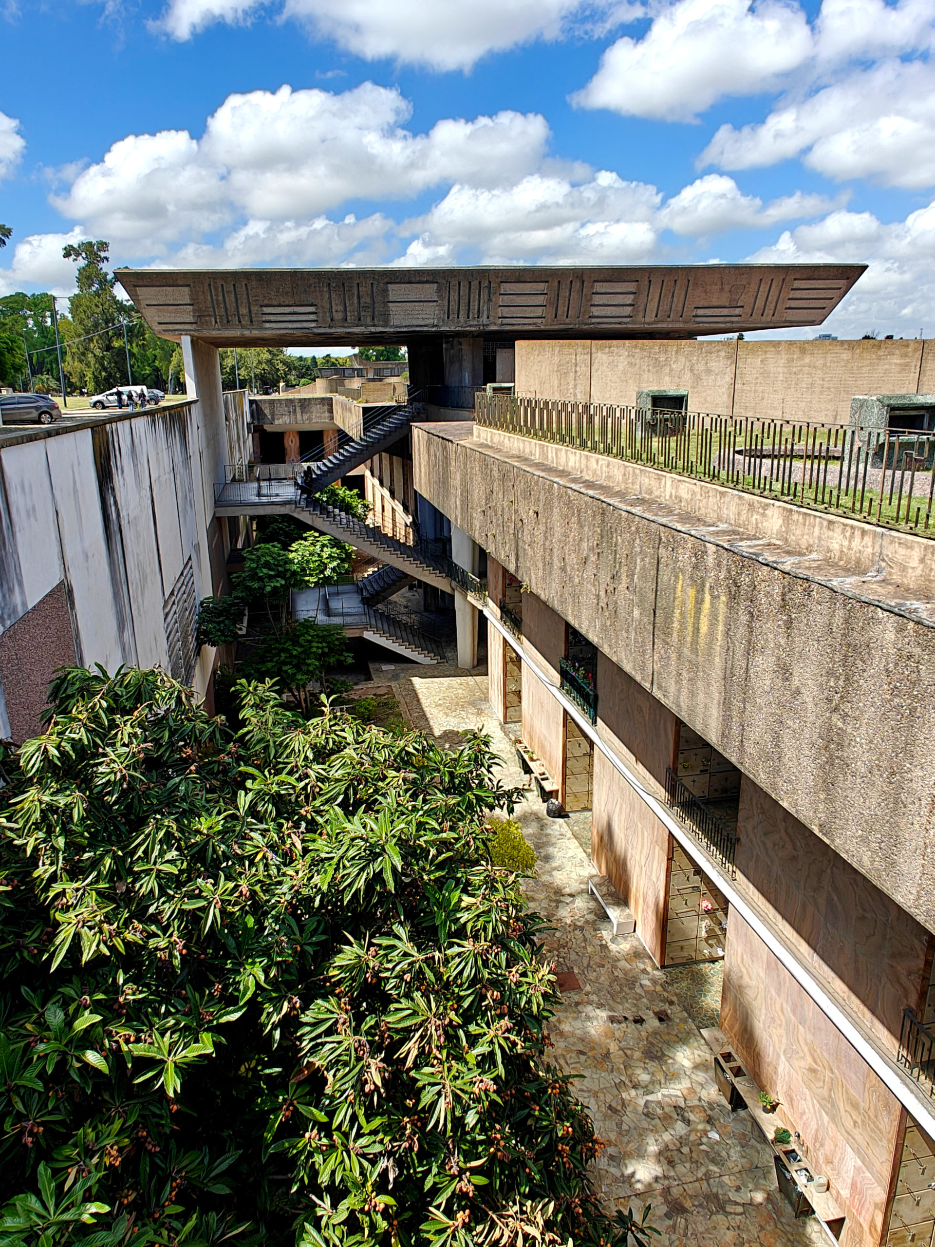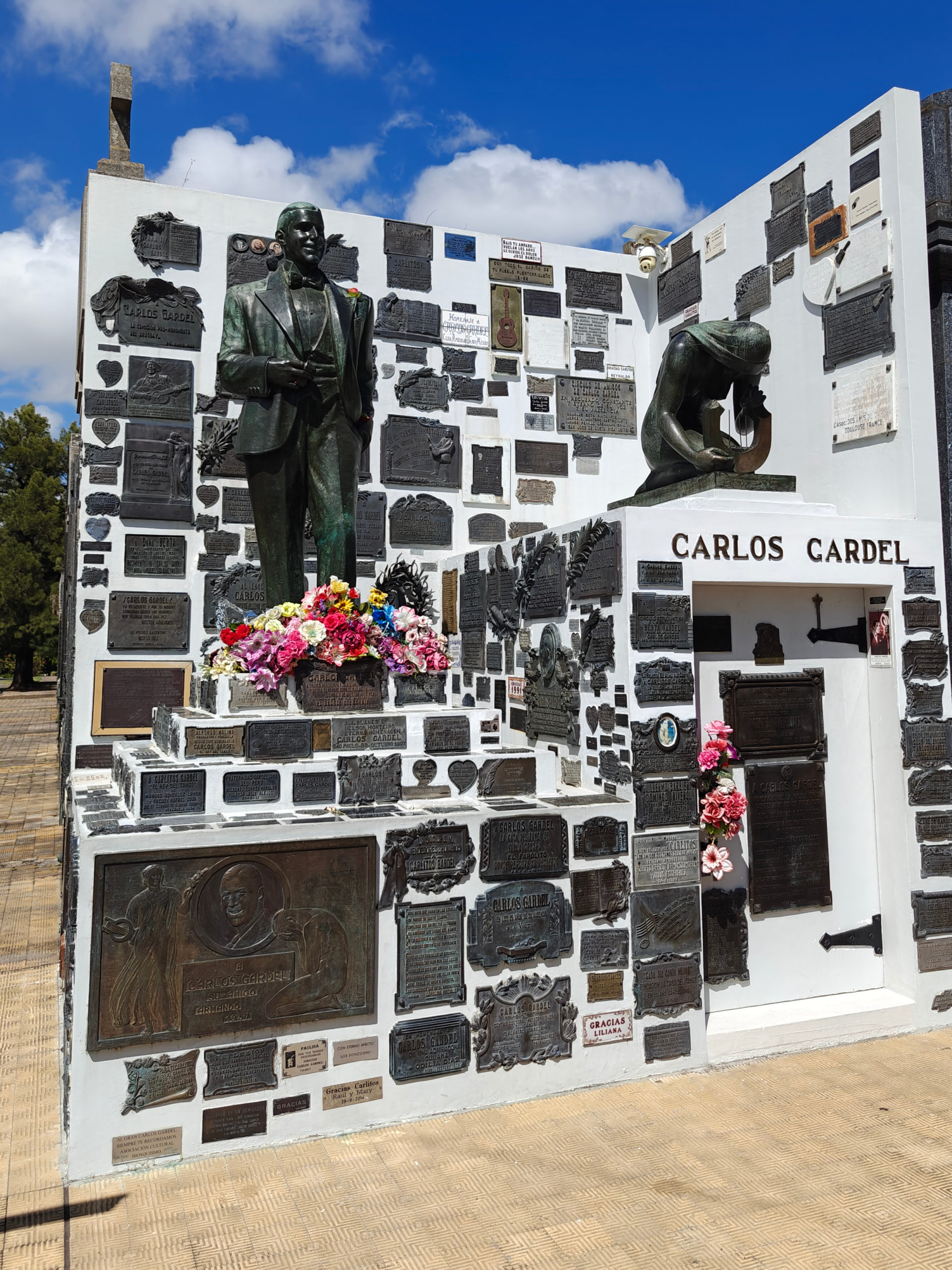 Twee weken geleden bezochten we al het Cementerio de la Recoleta. Vandaag trokken we naar Cementerio Chacarita. Dat is een begraafplaats die veel minder mensen kennen – en waar je ook geen toegangsgeld moet betalen. Het gevolg is wel dat het er hier en daar wat verloederd bijligt. Maar het blijft indrukwekkend: al die graven die vaak kleine huisjes lijken. Carlos Gardel, de befaamde tangozanger wiens museum we later zouden bezoeken, ligt hier begraven. Ook het brutalisme van de toegangen tot de urne-galerijen valt op.
