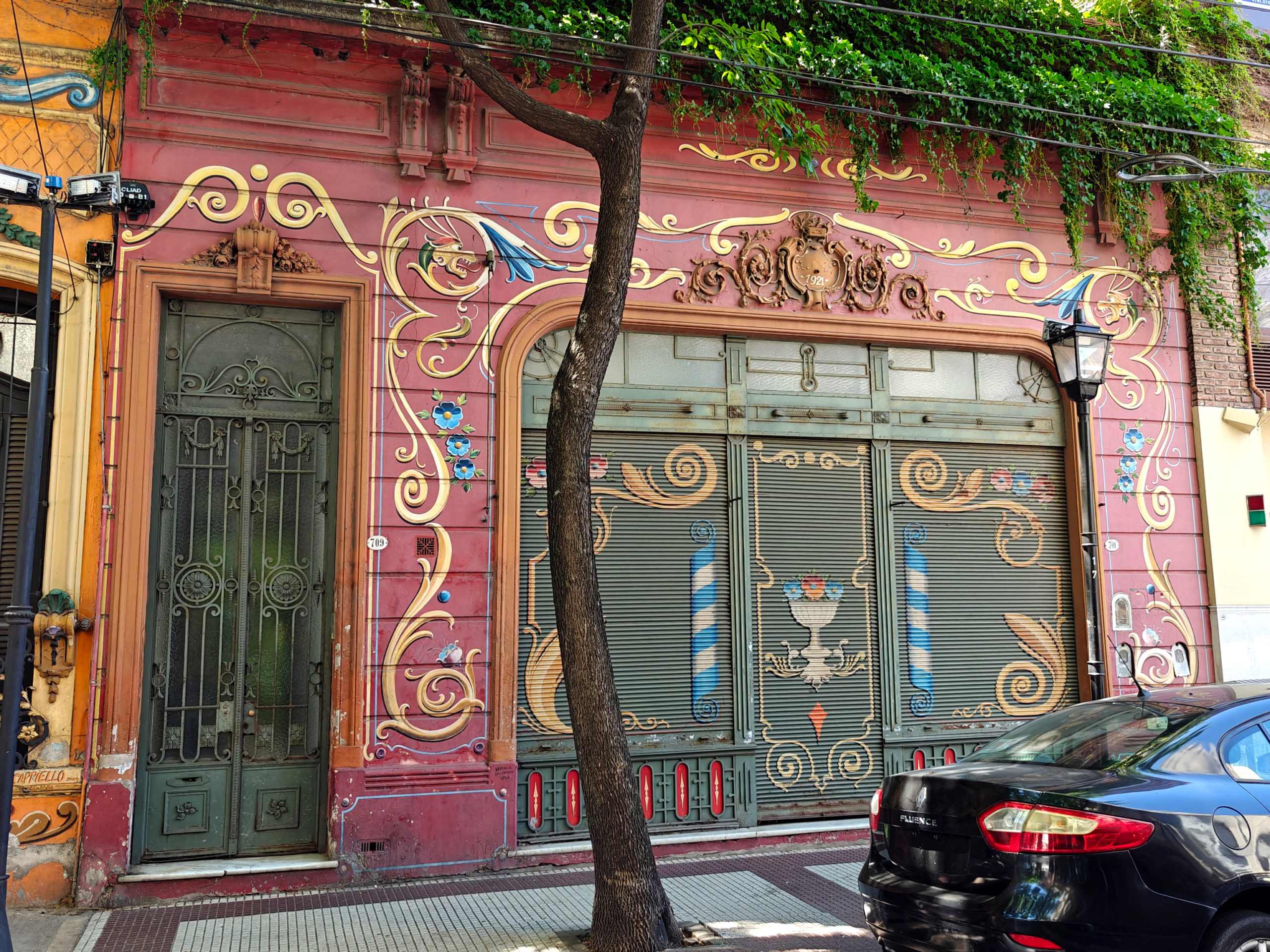 De buren van Gardel hebben de gevels van hun huizen versierd met gestileerde bloemen, ranken en ornamenten.Dit zijn voorbeelden van fileteado, de techniek waarmee huizen, uithangborden en bussen kleurrijk zijn versierd. Deze stijl, die zijn oorsprong vond in de stad Buenos Aires tegen het einde van de 19e eeuw, diende oorspronkelijk als eenvoudige versiering bedoeld om door dieren getrokken koetsen voor het vervoer van levensmiddelen te verfraaien, maar werd na verloop van tijd een kunstschilderij die specifiek was voor deze stad, en is intussen een van de meest herkenbare iconografische emblemen ervan geworden.