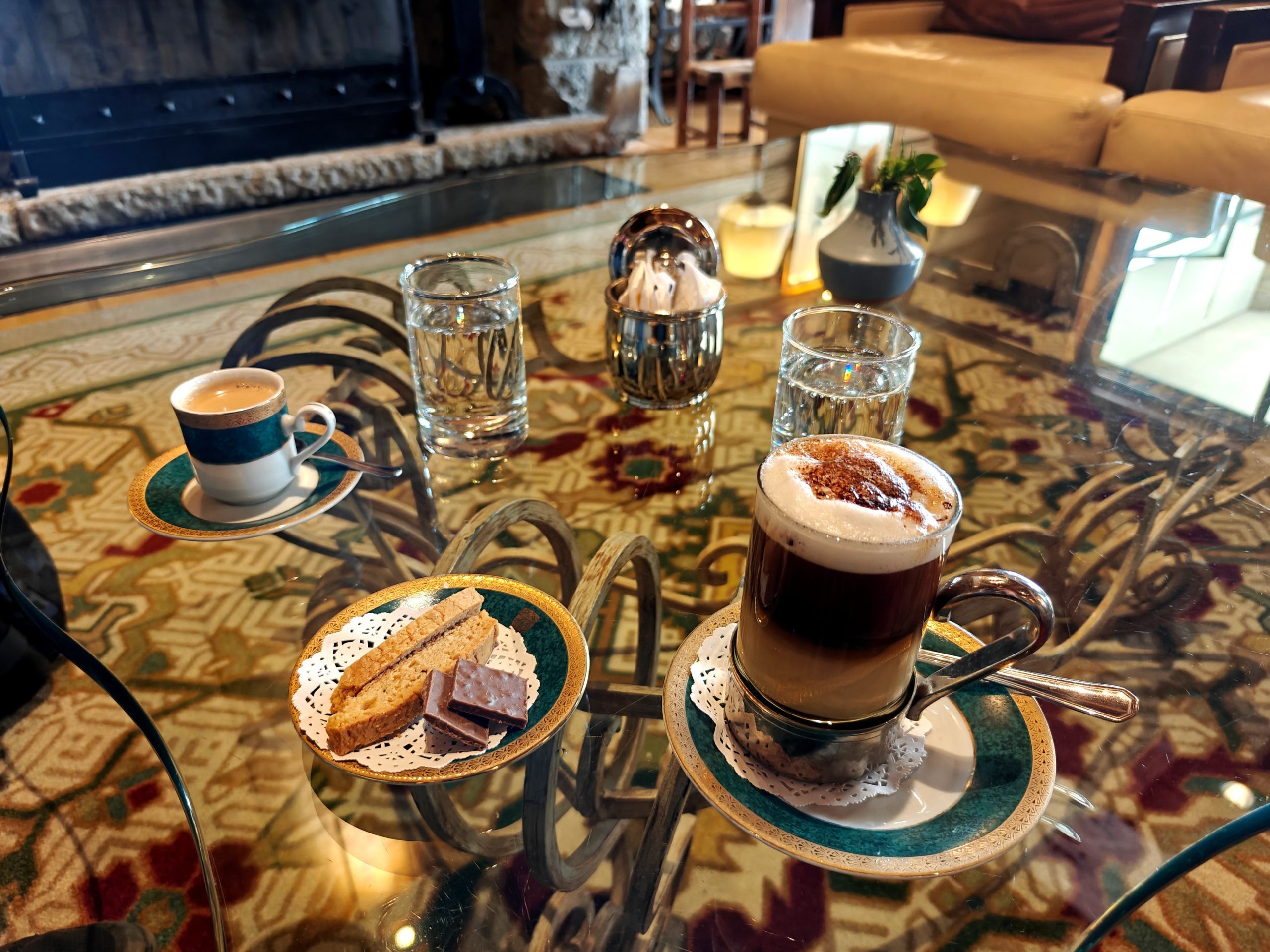 We wilden binnen een kijkje nemen, maar zoals verwacht stond er binnen de 10 seconden ene security guard bij ons die vroeg of we logeerden in het hotel. Ik zei van niet maar vroeg of we een koffie konden drinken, en dat kon. Het werd een weliswaar dure (16.500 ARS, zo’n 15 euro) maar lekkere koffie in een aparte omgeving.
