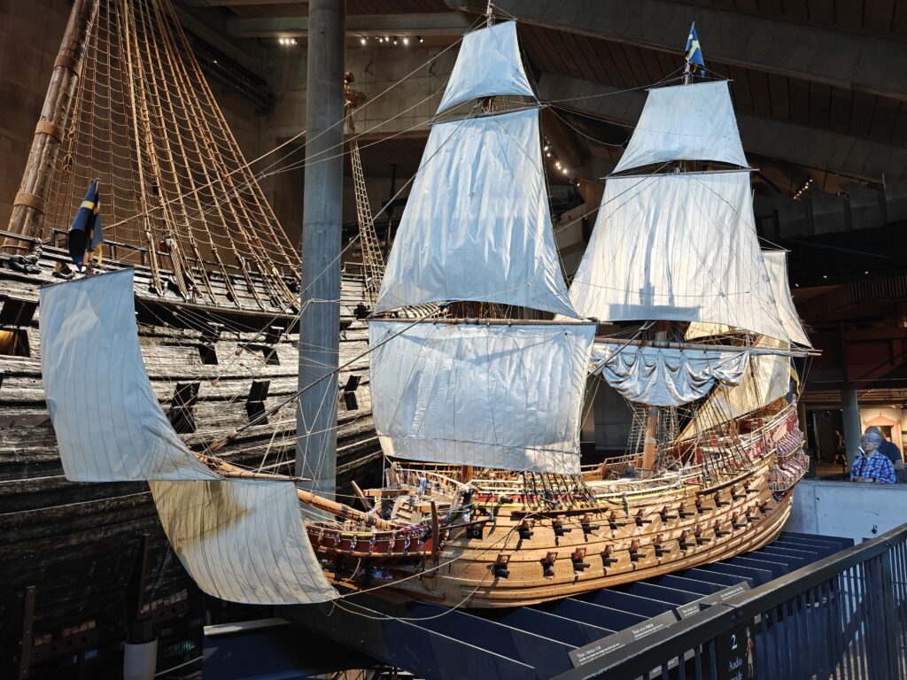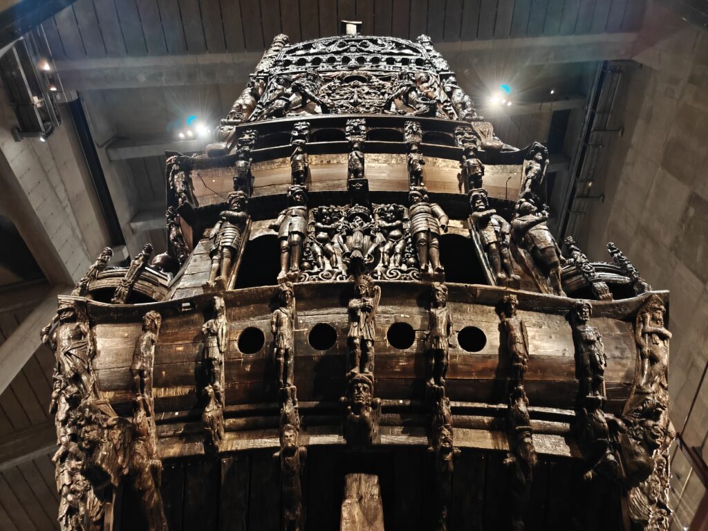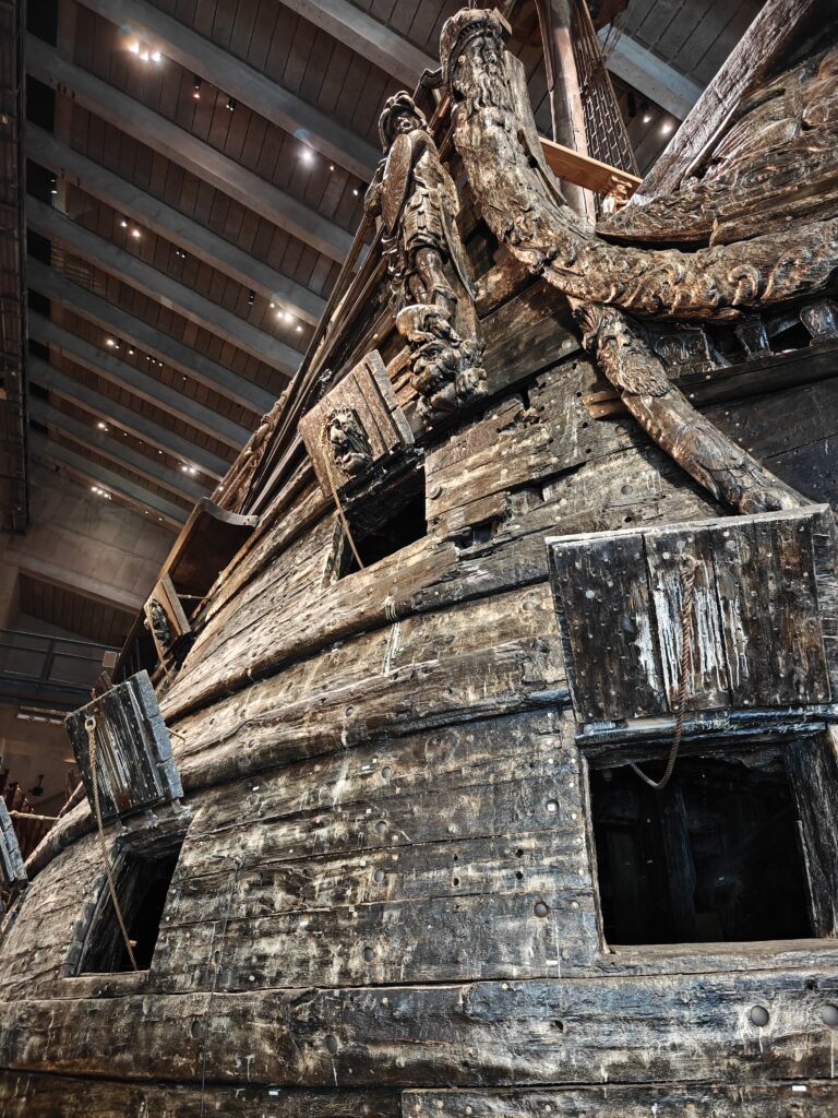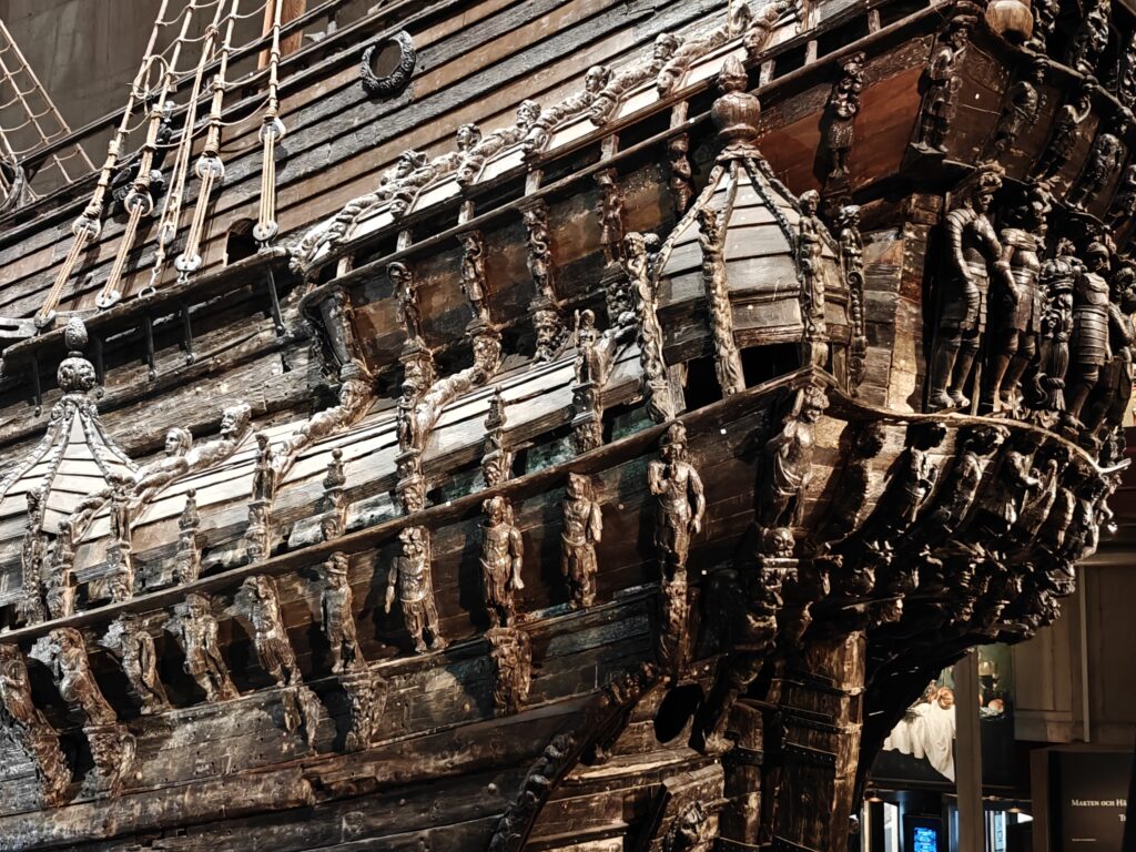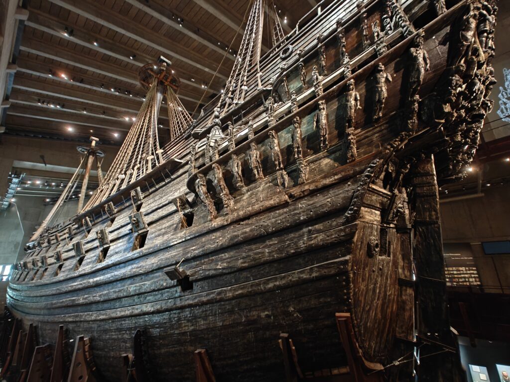 In het museum zie je het machtige oorlogsschip Vasa, dat het mooiste moet zijn geweest van de hele vloot van koning Gustav Il Adolf. Het lag eeuwenlang op de bodem van de haven van Stockholm, sinds het op 10 augustus 1628 het anker lichtte voor zijn eerste reis en na 20 minuten al zonk. In 1956 vond een in scheepvaartgeschiedenis gespecialiseerde ingenieur met behulp van een eenvoudige sonde het wrak terug. En door het lage zoutgehalte van het water en de dikke laag modder op de havenbodem was een heel groot deel van het schip bewaard gebleven. In 1961 kon het wrak vrijwel intact geborgen worden. Om het te kunnen bewaren is het daarna maar liefst 17 jaar lang besproeid met polyethyleenglycol. Dat wordt in archeologie gebruikt als conserveringsmiddel voor organische materialen, vooral bij hout dat eeuwenlang onder water heeft gelegen. Hierdoor wordt voorkomen dat het hout vervormt, krimpt of barst als het opdroogt.