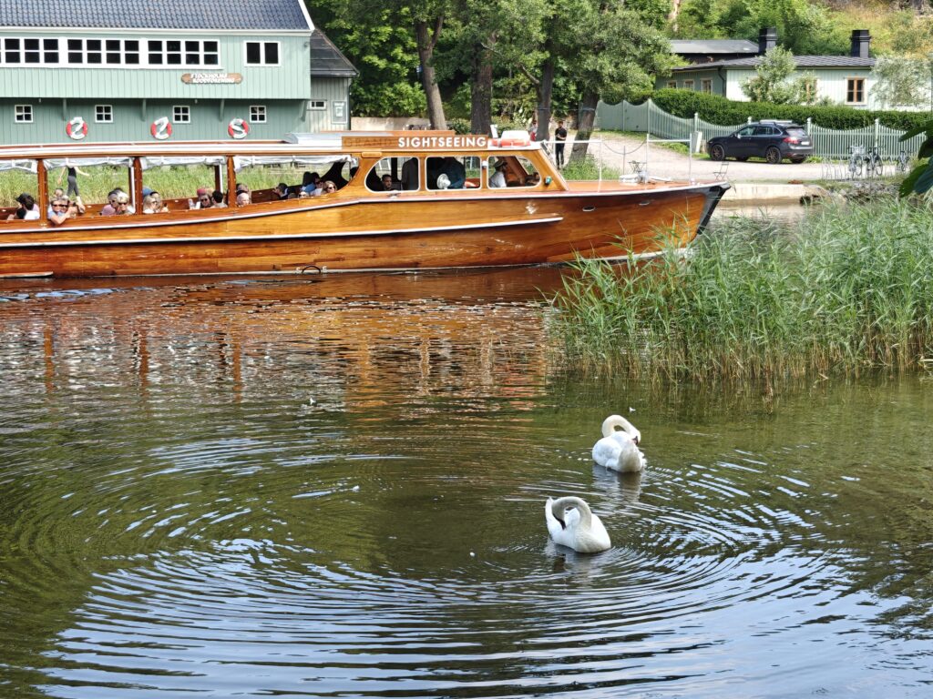 Voor de terugkeer namen we de overzetboot, die elke 10 minuten tussen Slussen en Djurgården vaart. Daarbij kwamen we voorbij het ABBA museum, dat we echter links lieten liggen, net zoals het immense attractiepark Tivoli Gröna Lund.