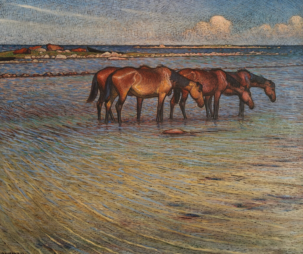 We zetten dan onze wandeling verder tot in de Thielska Galleriet. Dat is een art-nouveauvilla, gebouwd voor bankier Ernest Thiel in 1904 die nauwgezet gerestaureerd is. De villa is ingericht met elegant meubilair dat typerend is voor zijn tijd en aan de muren hangen heel wat schilderijen die Ernest en Signe Maria Thiel in hun leven hebben verzameld. Ernest Thiel (1859-1947) nam architect Ferdinand Bo berg onder de arm om dit herenhuis te bouwen waarin hij een woning creëerde ‘waarvan de muren bedekt zijn met schilderijen’. Buitengesloten door de hogere kringen van Stockholm bezocht het echtpaar uitsluitend kunstenaars, schrijvers en componisten.