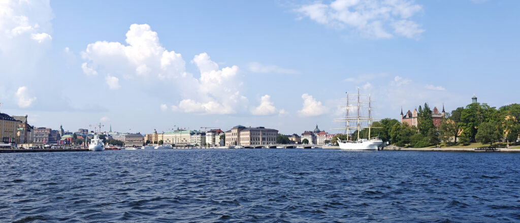Het weer voorspellen in deze regio bleek voor de weerapps een uitdaging de afgelopen weken: vaak hadden die tegenstelde meningen of bleken de voorspellingen niet uit te komen. Maar vanochtend waren ze het allemaal eens: het zou een stralende (en warme!) dag worden. De eerste echte zomerse dag in Stockholm sinds weken blijkbaar. En dus pasten we het voorziene programma licht aan: we gingen ’s morgens al naar het Vasa museum in plaats van in de namiddag, zouden dan een lange wandeling maken over Djurgården en eindigen met een bezoekje aan het strand.