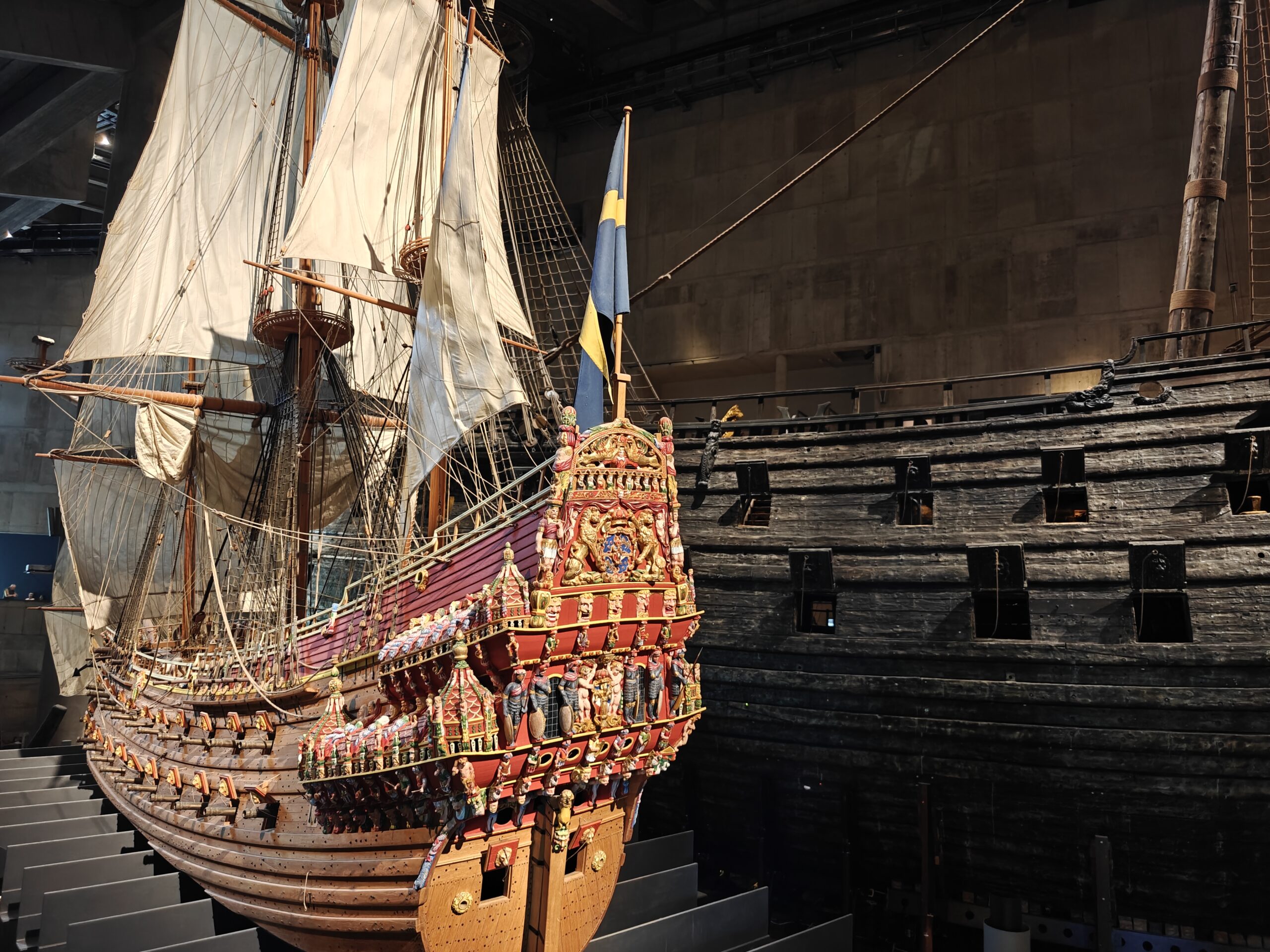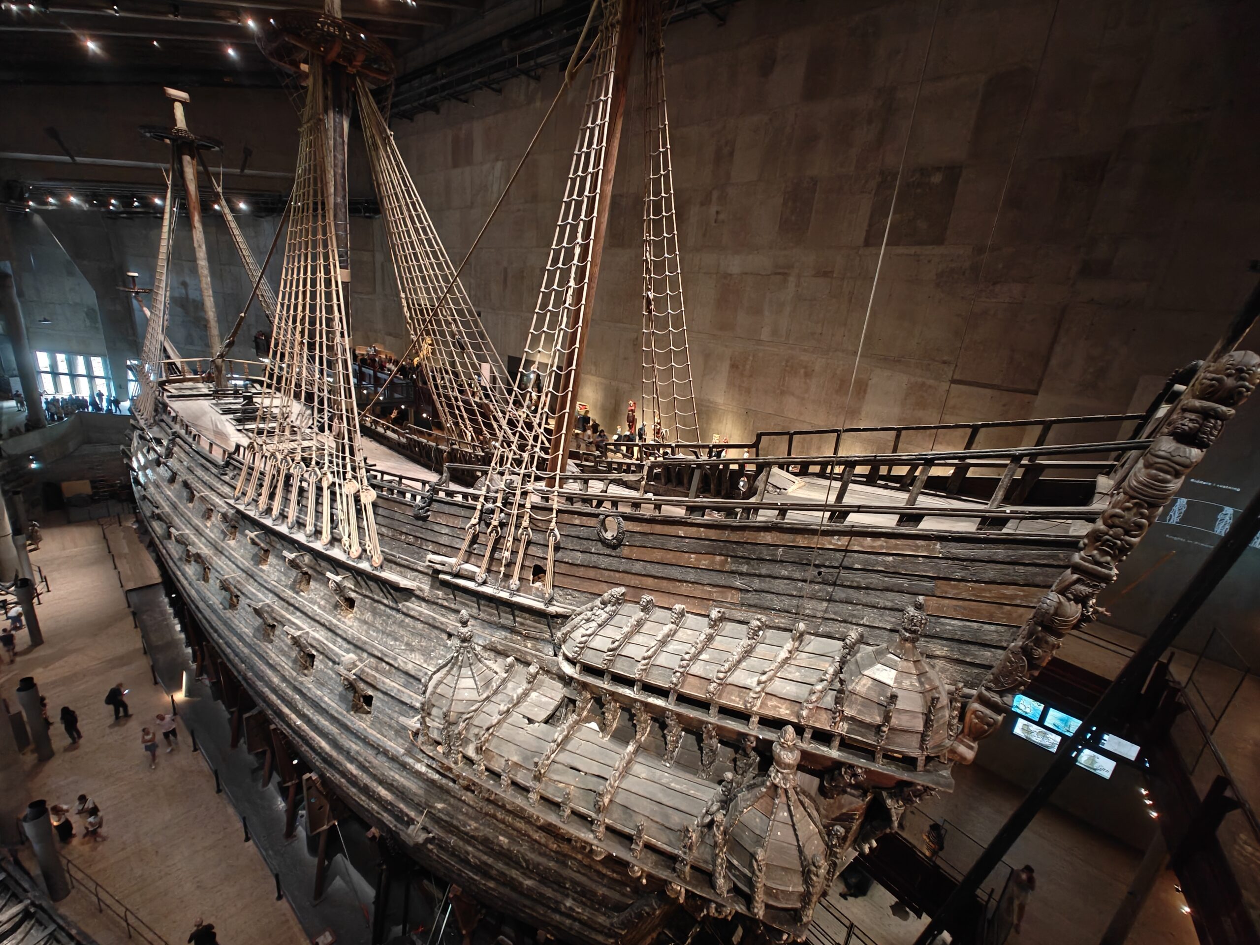 In het museum zie je het machtige oorlogsschip Vasa, dat het mooiste moet zijn geweest van de hele vloot van koning Gustav Il Adolf. Het lag eeuwenlang op de bodem van de haven van Stockholm, sinds het op 10 augustus 1628 het anker lichtte voor zijn eerste reis en na 20 minuten al zonk. In 1956 vond een in scheepvaartgeschiedenis gespecialiseerde ingenieur met behulp van een eenvoudige sonde het wrak terug. En door het lage zoutgehalte van het water en de dikke laag modder op de havenbodem was een heel groot deel van het schip bewaard gebleven. In 1961 kon het wrak vrijwel intact geborgen worden. Om het te kunnen bewaren is het daarna maar liefst 17 jaar lang besproeid met polyethyleenglycol. Dat wordt in archeologie gebruikt als conserveringsmiddel voor organische materialen, vooral bij hout dat eeuwenlang onder water heeft gelegen. Hierdoor wordt voorkomen dat het hout vervormt, krimpt of barst als het opdroogt.