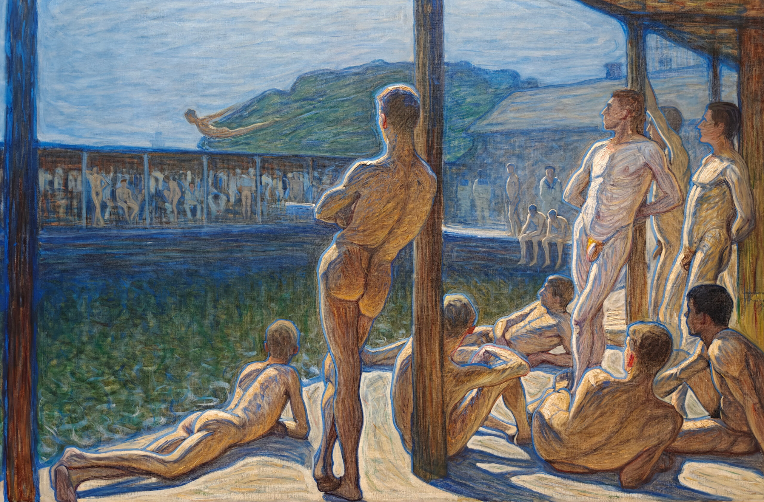 Na nog een espresso in Svedjan Bageri, een fijne koffiebar vlakbij ons hotel, namen we de bus naar Tanto strandbad, een strand op het schiereiland waar we verblijven. Al is “strand” een eufemisme: er is een zandstrook van pakweg 5 meter breed en 40 meter lang. 200m² strand dus. En vermits het de eerste echte zomerdag in Stockholm was, was elke vierkante centimeter ingenomen. Ook op het ponton ernaast was het erg druk. Maar gelukkig ligt er ook een vrij groot park naast waar we een uurtje of zo van de zon hebben kunnen genieten.