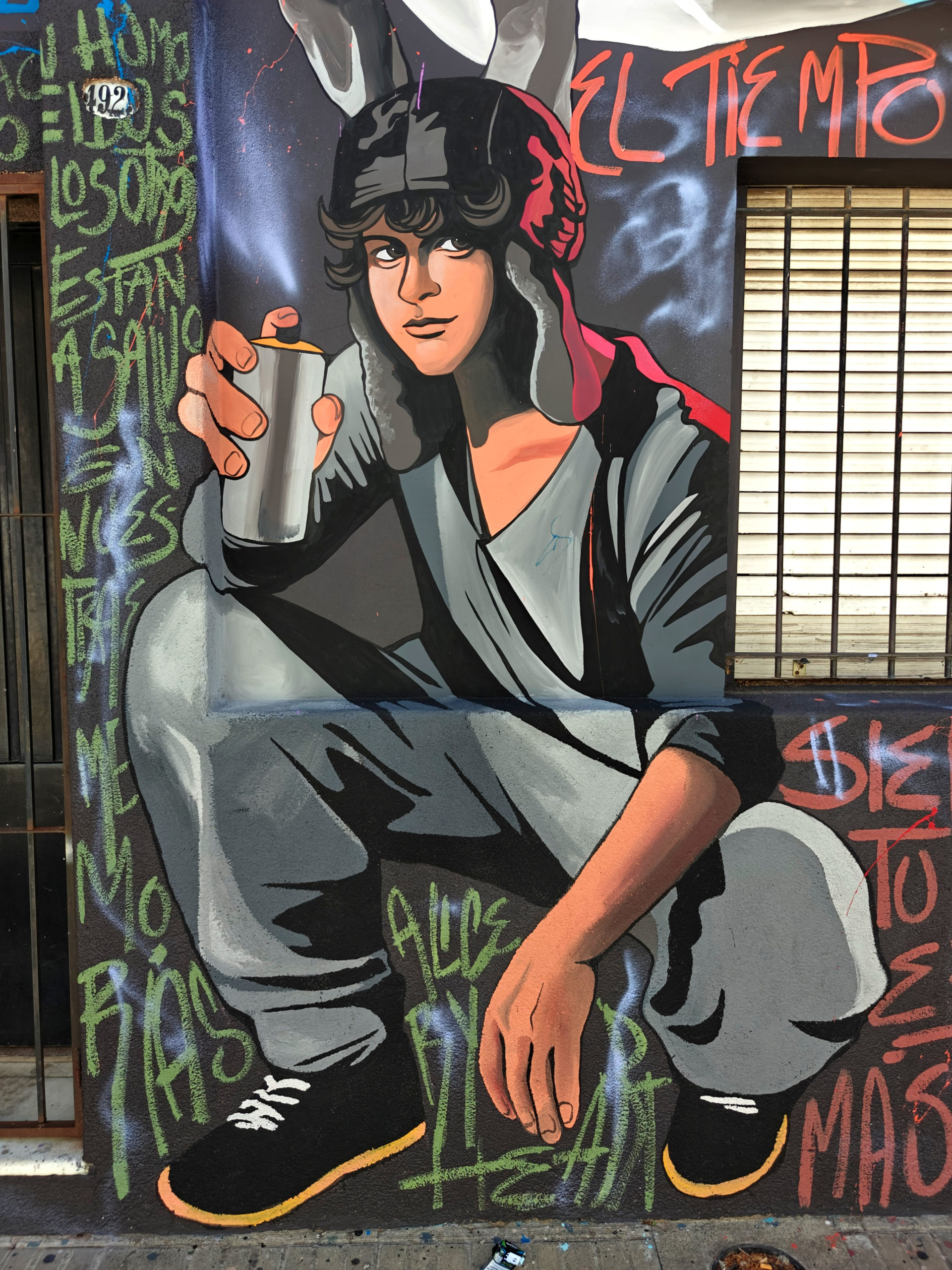 Verder zagen we ook wat leuke street art, en ook een wat bizar fenomeen waarbij heel wat appartementsgebouwen in de inkomhal bewaakt worden… door iemand op een scherm. Blijkbaar moet je een app downloaden en daarmee met de bewakingsagent contact maken als je binnen wil.